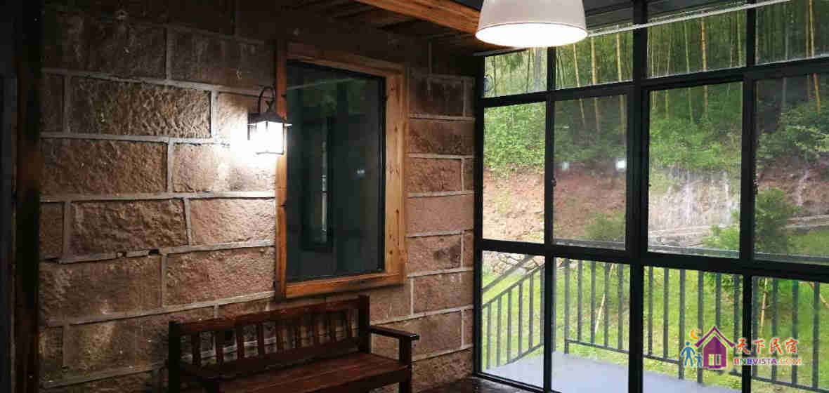 缙云十里青山·森林美墅所在地座北朝南,处在大洋山南麓,位置极佳,极目远眺,群山逶迤,满目苍翠。民宿改建于原林场房屋,以本地花岗岩为墙,加以精心装修,颇具特色,旁有山涧环绕、绿林为篱,静可焚香品茗,偷得浮生半日闲;动可登山戏水,此处风光亦无限。