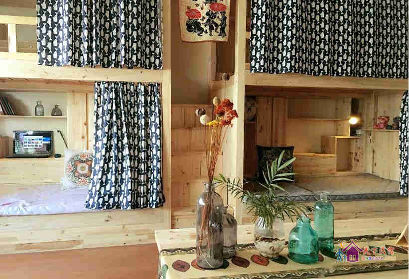 - 所有房型: 朝夕榻榻米大床,陌忘榻榻米大床,女生四人间(床位),男生四人间(床位),阁楼榻榻米小套间,阁楼榻榻米大床房,帘舍萌妹四人床位房(公共卫浴),帘舍女生四人间(床位)