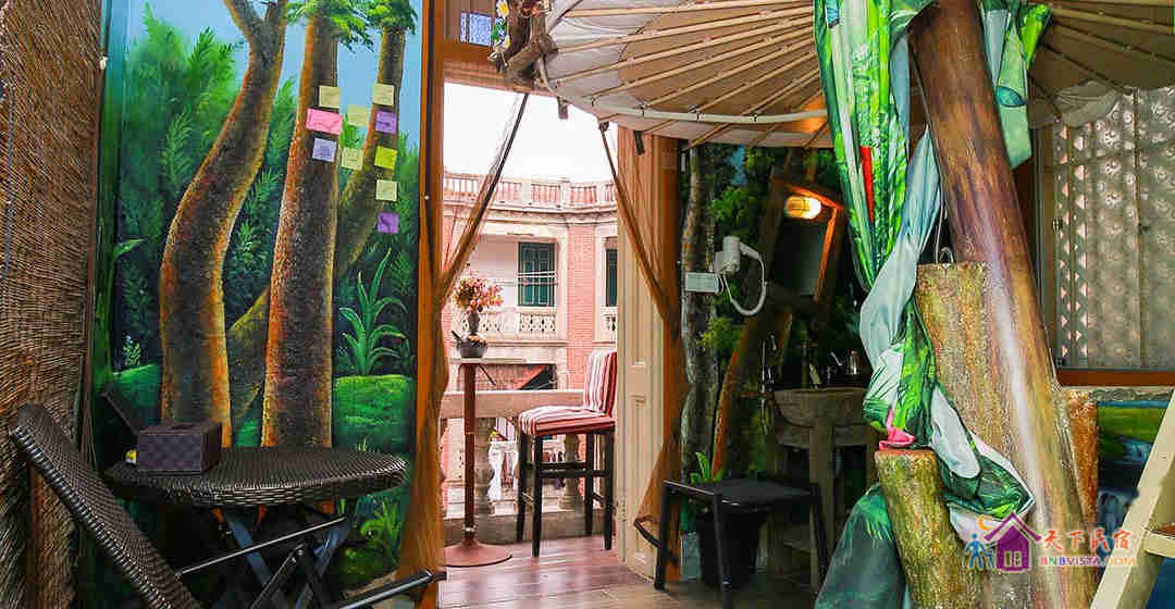 - 所有房型: 复古浪漫露台浴缸房,阁楼主题双床房,鸟巢阁楼阳台大床房,温馨主题单人房,温馨亲子阁楼房
