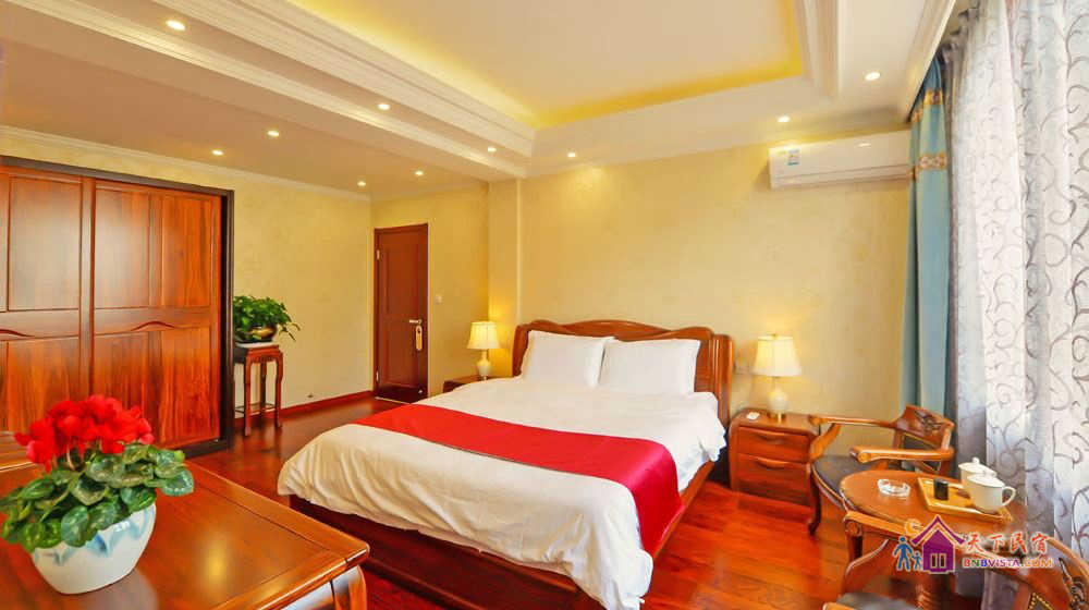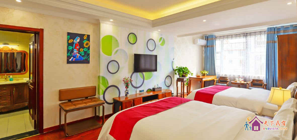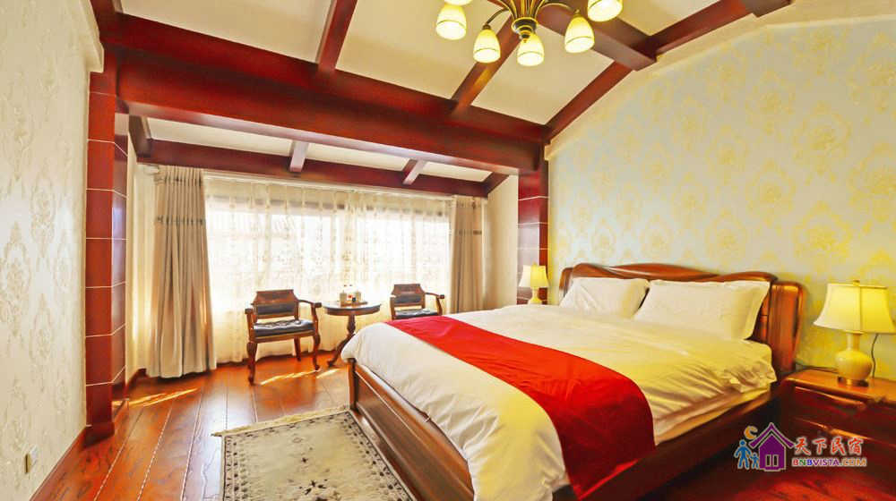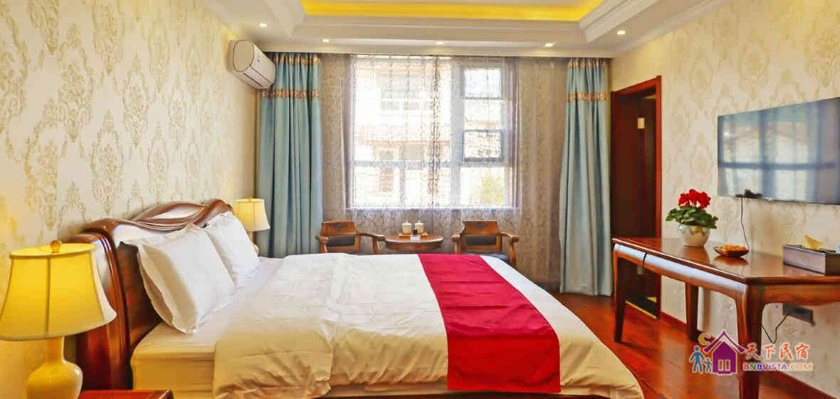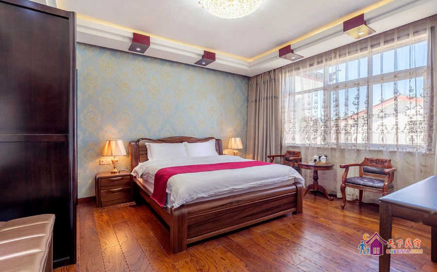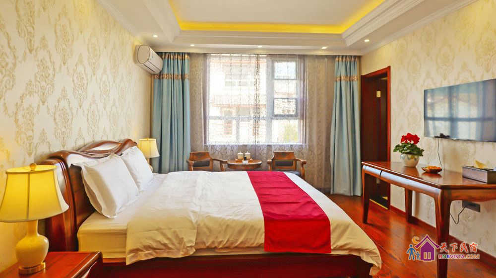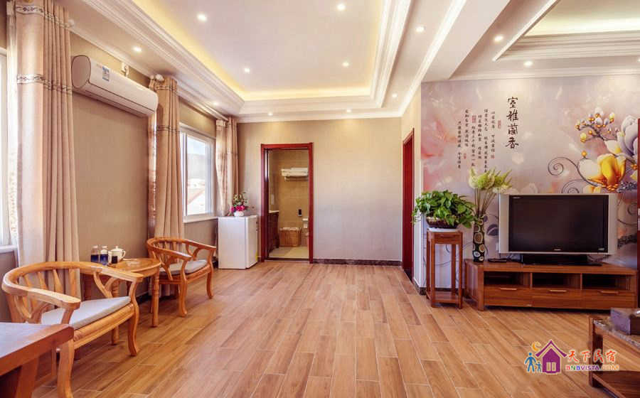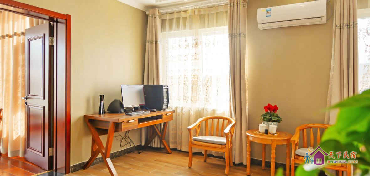 这里每间客房都风格迥异,简约温馨,家居、摆设全部精心挑选或专门订制、亲手打造,配置有真皮舒适大床、电动加热炕、独立卫浴、茶室、机麻室、数字电视、Wi-Fi,全天候热水等。