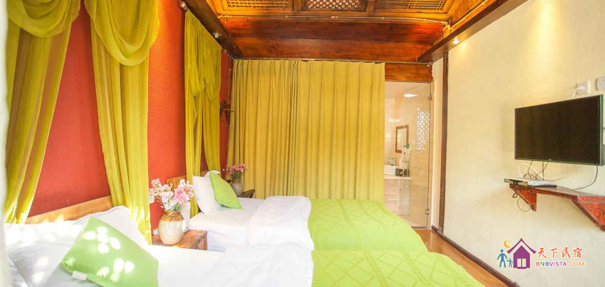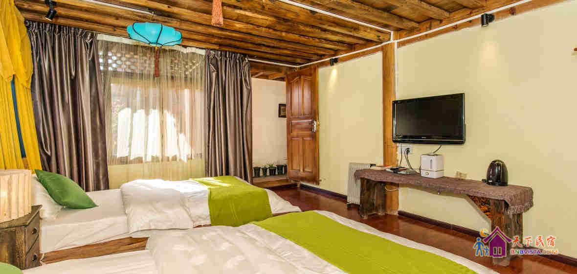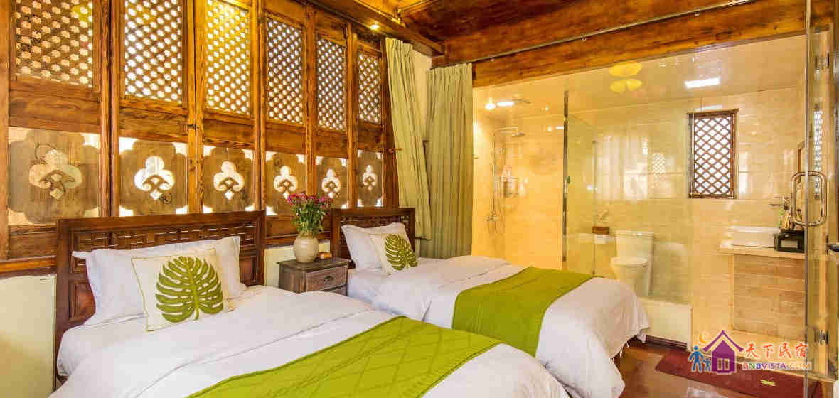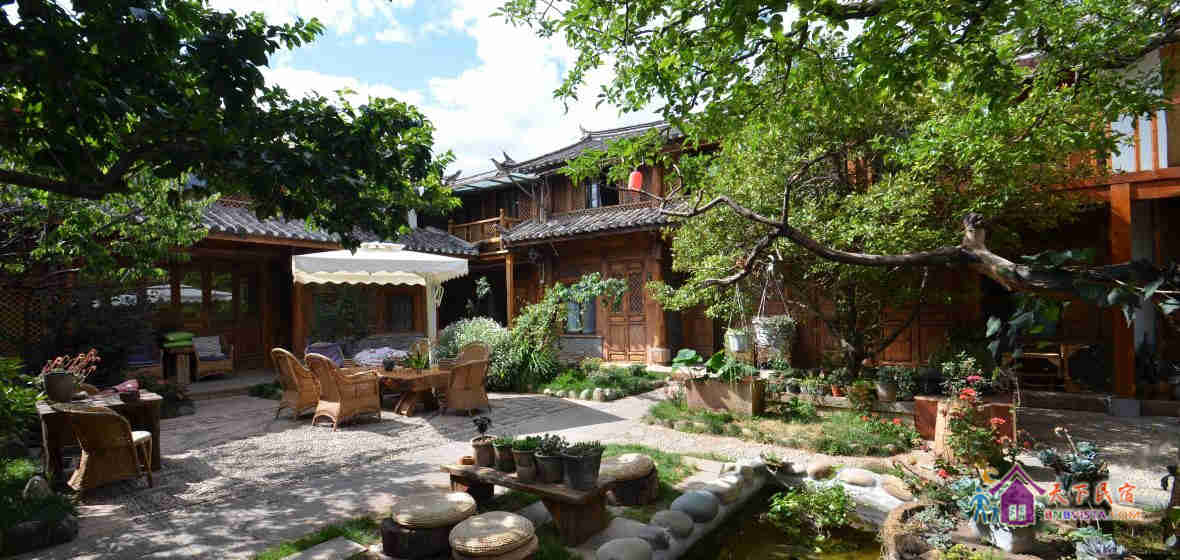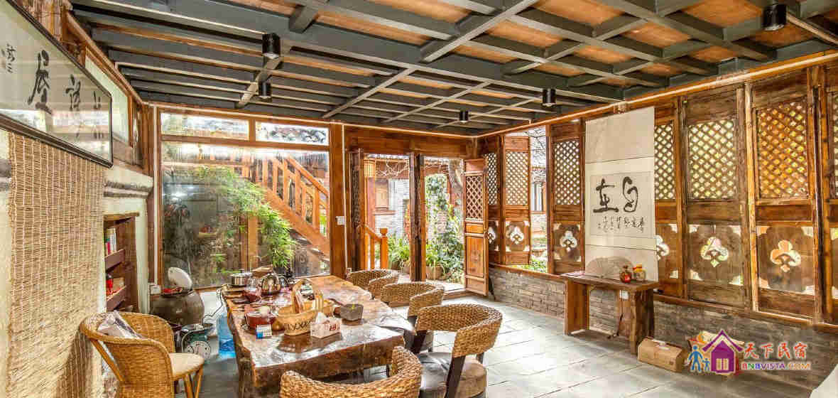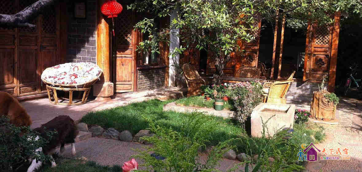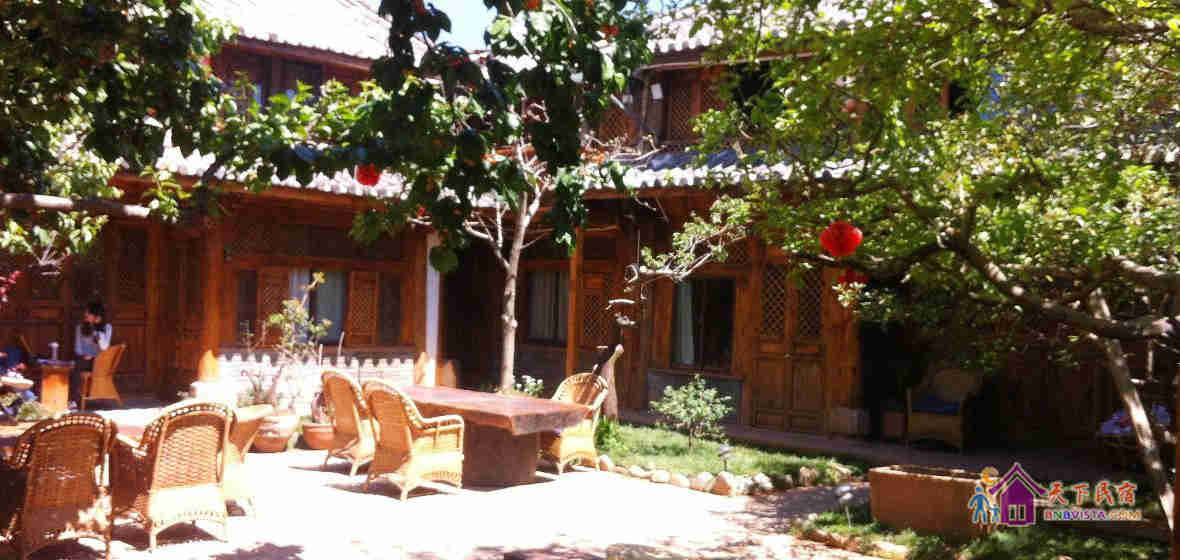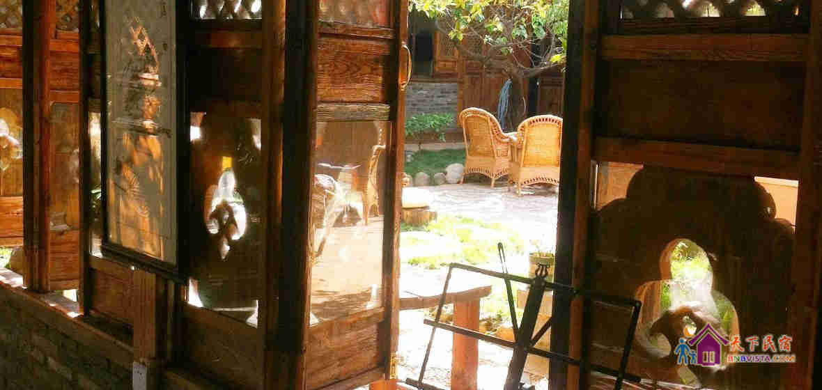丽江束河茶语屋客栈总体面积约占一亩地,其中有100多平米的大庭院,传统的纳西建筑“三房一照壁”,古朴雅致百年不腐的梨木老雕花门窗。院落鸟语花香,果树丛生,苍翠幽静,大半年时间里随时能享用时令水果(苹果,樱桃,李子,杏子,桃子)。在这里,既享受古老府邸的舒适幽静,又拥有现代生活的浪漫温馨,是您休闲度假的好去处,亲切、宁静、随意,连心情都是散漫的,躺在客栈院子的屋檐下果树下翻着书,任凭午后淡淡的倦意笼罩着自己,无忧无虑,宛如儿童。