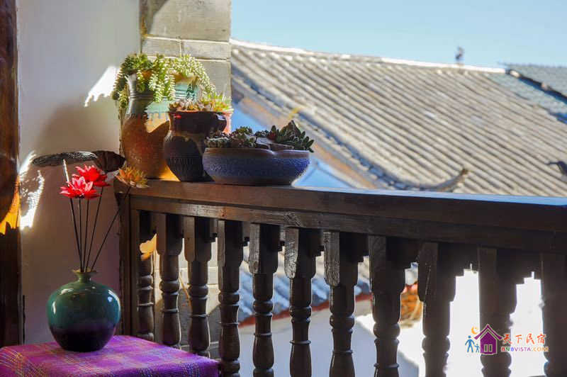 客栈二楼的观景阳台展现着古城的风景。客栈院子内还有一个大落地窗,您可在院子里躺在落地窗户前,发呆、晒太阳、听音乐,感受丽江慵懒的生活节奏。