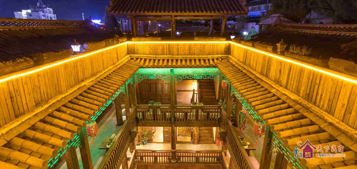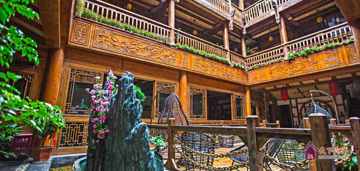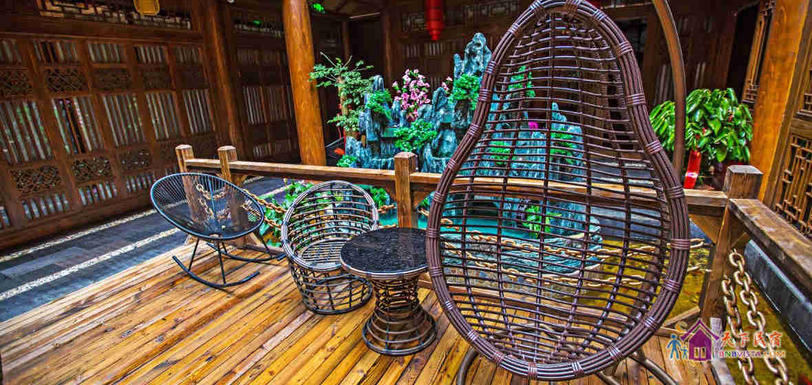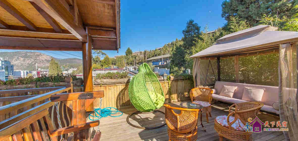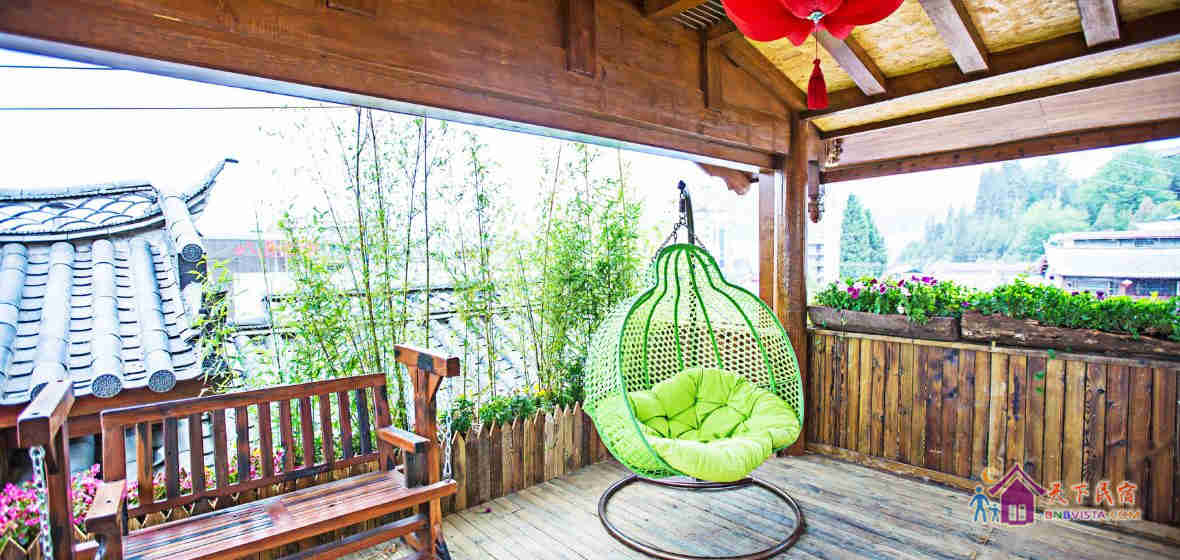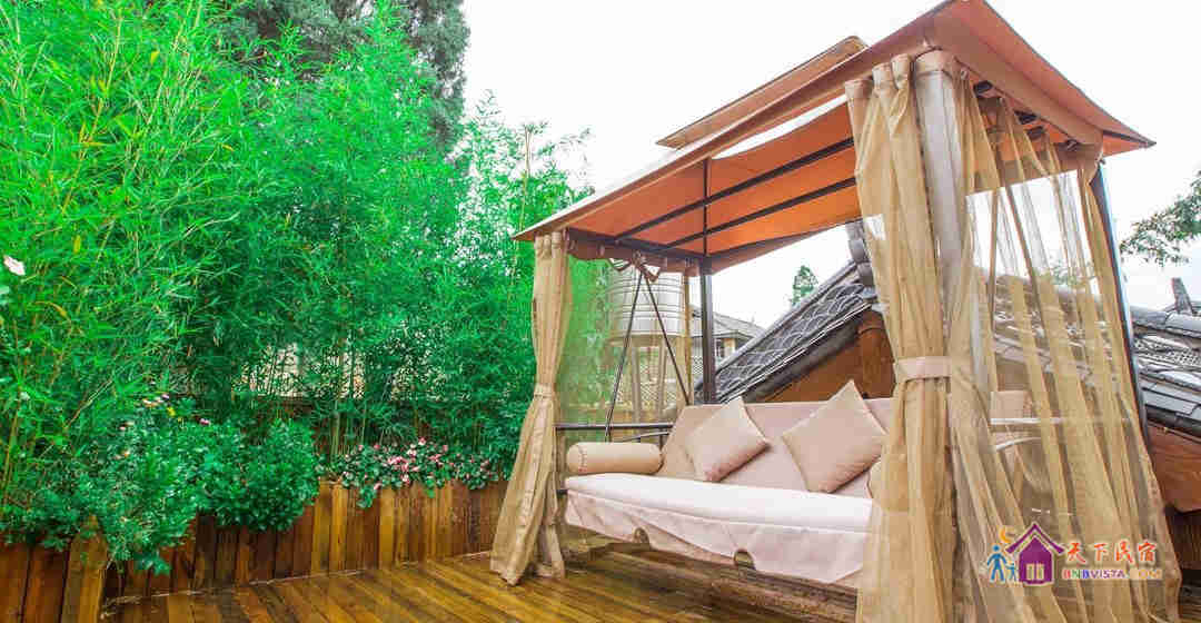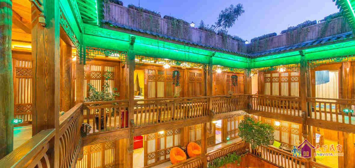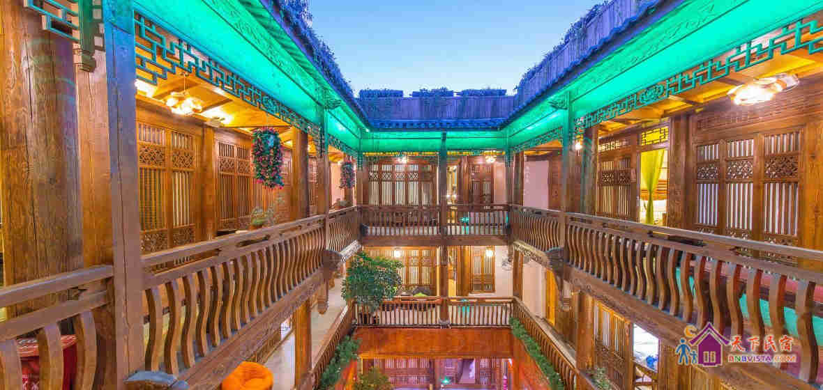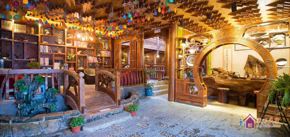 客栈以经典的纳西族“三坊一照壁,四合五天井,走马转角楼”的庭院样式为基础,穿插现代化设计理念,回字形上下三层结构,花草遍地、阳光充足。院内中庭为客人休息区,台湾大厨风味的早餐、新鲜水果、晚上还有甜点赠送,提供KTV房,前台和休闲喝茶区域融为一体。