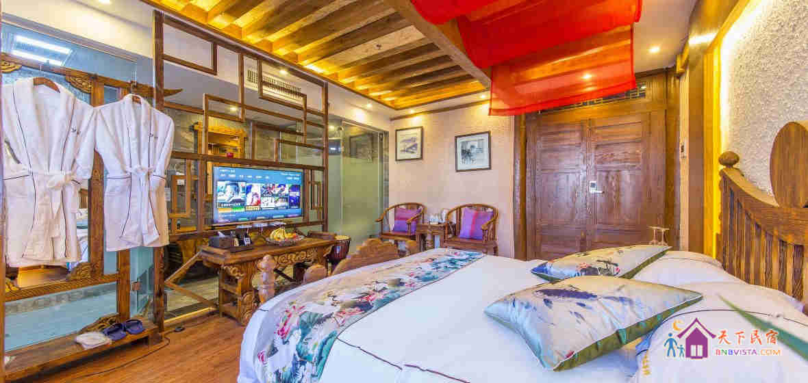 客栈占地1600多平,每间客房风格各不同,房内配置中央空调、大多数房间配有数码冲浪浴缸、香港海马床垫、箭牌智能马桶、有的房间配有桑拿汗蒸房,让您在享受古色古香的纳西庭院的同时,感觉到现代的星级服务。客栈被评为2018年度寻找丽江“最舒适客栈”网络大赛一等奖。