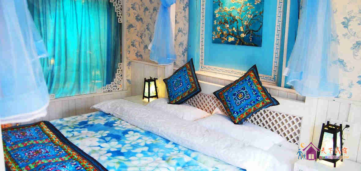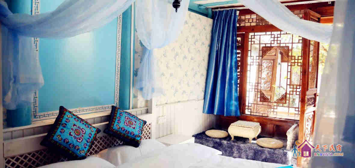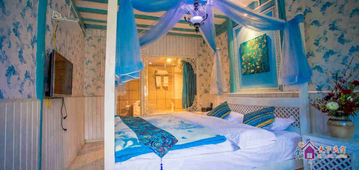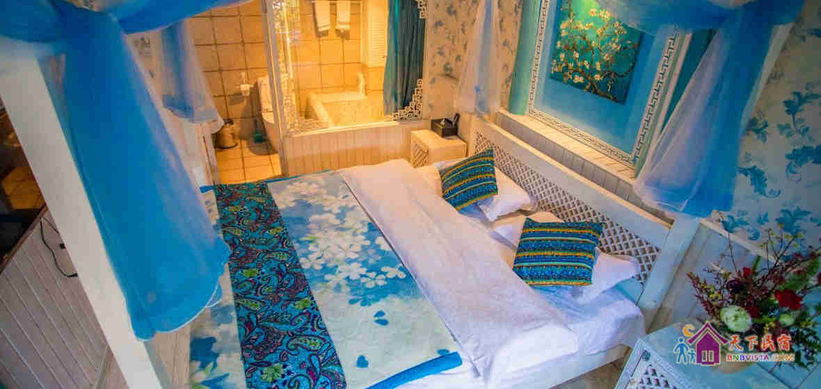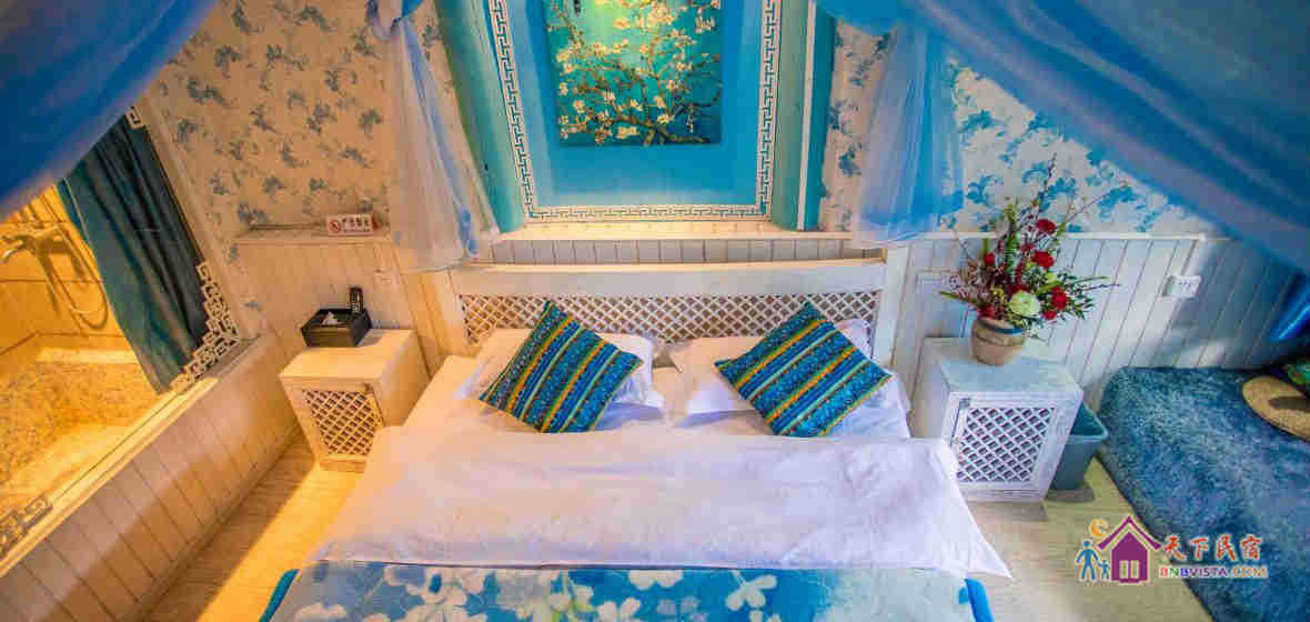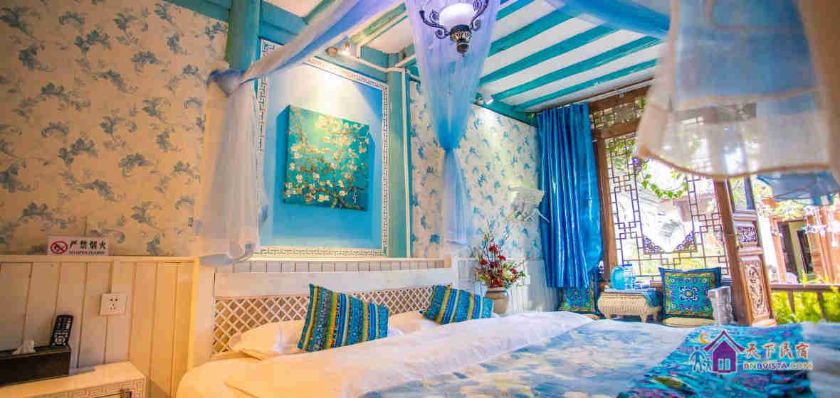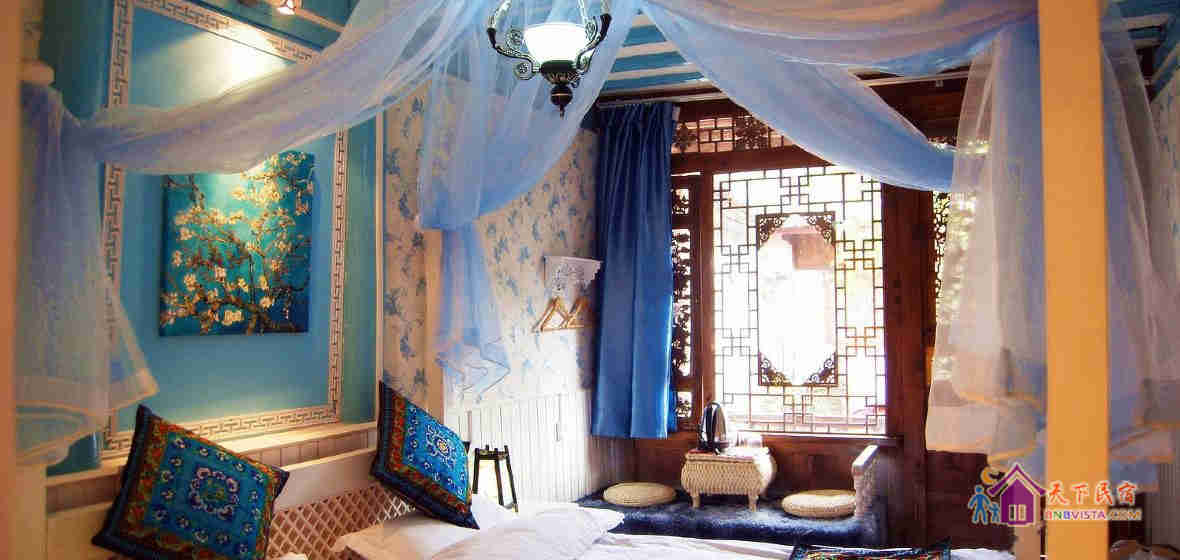 谷主喜欢多变的装修风格,因此每间客房风格各异,总体而言偏重女性柔美的审美倾向,清新蓝白调的地中海风,暗金酒红色的宫廷款,紫罗兰卷草纹的梦幻调,苍绿出尘的归隐曲,配合游者不同的心境。木刻雕花,纱笼幕垂,希望能带领您的身心从纷繁的世界中暂时抽离,感受时光在身边静静流淌,岁月无声,却在心底留痕。