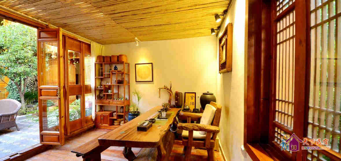半院阳光精品客栈装潢古朴雅致,客房精致典雅,设备一应俱全。客栈配设中西餐厅、咖啡吧、图书馆、茶室,并为您提供接机、代客泊车、管家、礼宾、洗衣等贴心的服务,让您全方位感受关怀备至的待客之道。