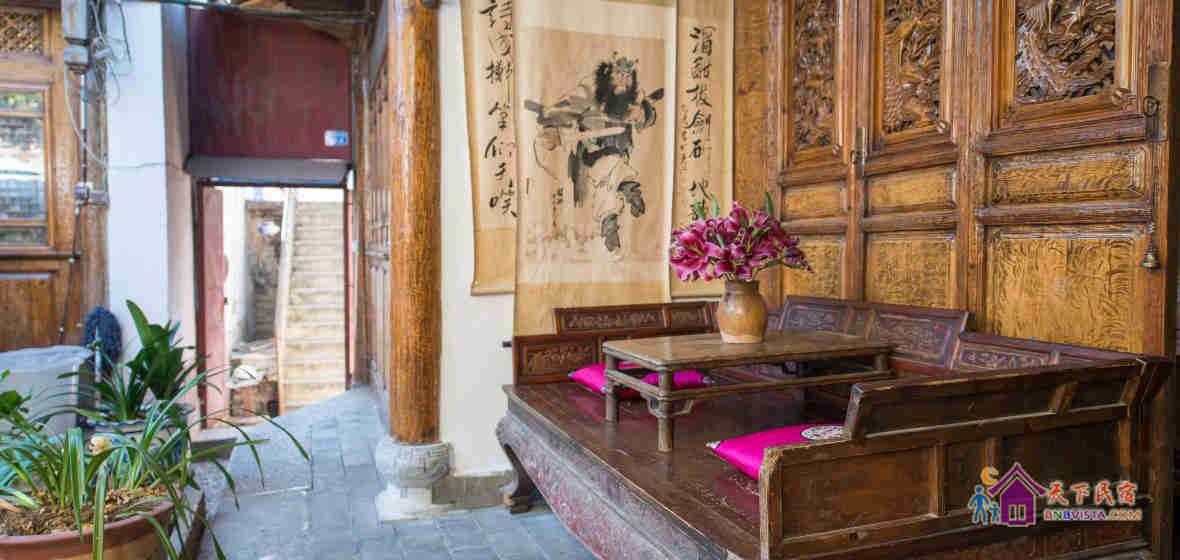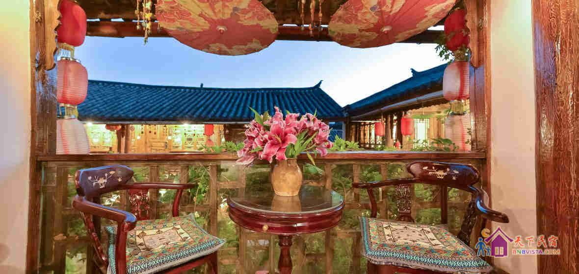 位于云南省丽江古城繁华地段,靠街而不临街,真正的闹中取静,古城小石桥附近,五一街旁,距四方街步行5分钟,纳西风格院落,温馨安静,体现民族特色的三坊一照壁、四合五天井、小桥流水人家的纳西小院。每间房都采用纯木质结构,古色古香,环境幽雅。同时弥补了酒店的不足与缺陷,客栈设有复式大床房、大床房、标准房,房间装修精致、简约,部份房间带观景阳台及配备电脑,住宿环境十分温馨、舒适。宽带入户、wifi 覆盖。是一个旅游休闲、商务出行、蜜月旅行的好场所! 丽缘居客栈是一位在丽江生活多年的著名画家---来自中国武汉的陶刚(号山野村夫,山野浪子)设计的,其作品连续在全国各展中屡获金奖,作品也被海内外许多知名人士收购并收藏,中央电视台、四川电视台、丽江电视台等多家新闻媒体为其人其作品争相报道;拾阶而上跨过古老的大门,“丽缘居”那古老气氛赫然呈现在眼前:三坊一照壁、四合一天井、小桥流水人家,在正房(堂屋)的正门口陈设的便是明清时期的一张大大的罗汉榻,大红的福字和龙凤的靠枕平添了几许纳西族人的传统喜庆。院中种植了许多名贵的花草,在这个不同的季节里都放肆的争艳着,名贵的兰花像大家闺秀般淡定、清雅;香美的玉兰树清风玉立,而紫藤却在成熟的季节里任意的妖娆妩媚着丽江的艳丽…… 院中的地面上以鹅卵石砌着的蝙蝠和福字,寓意着吉祥如意!因为古老,细细的碎石瓦诉说着纳西民族的远古故事与历史的变迁。雕刻精细的古老大花窗,随处可见的明清家具及壁上的书画…… 整个院子处处都是充满着诗情画意,心旷神怡……“丽缘居”---相识丽江,相聚丽缘,愿天下所有有缘人在丽江丽缘居结缘而居!