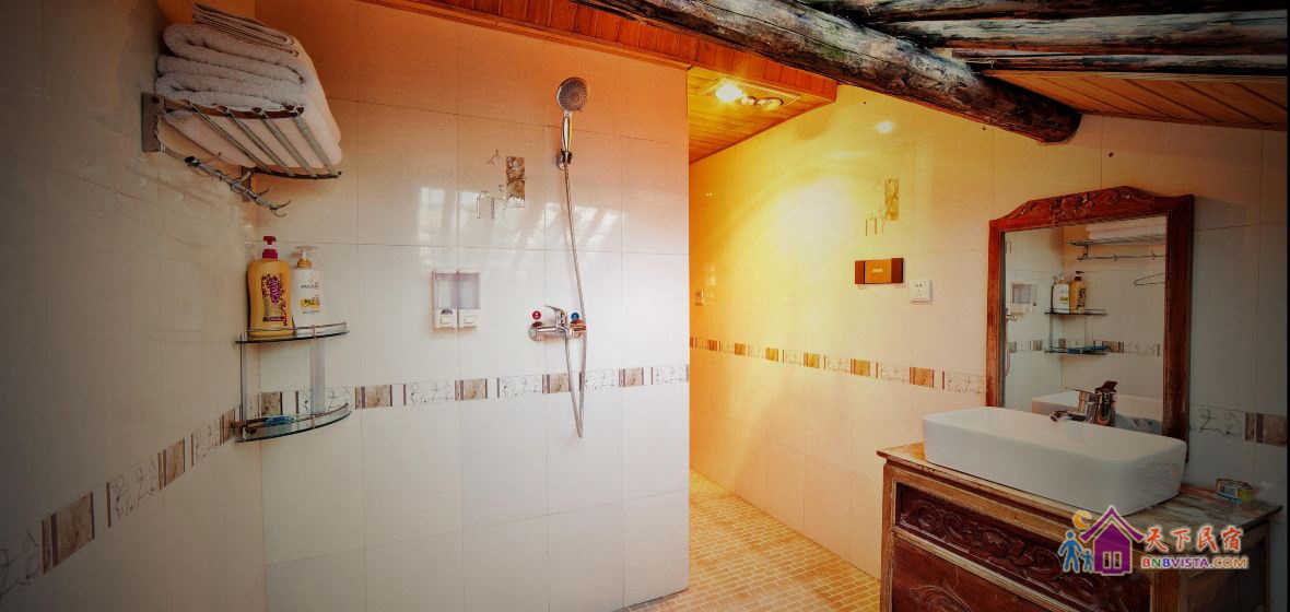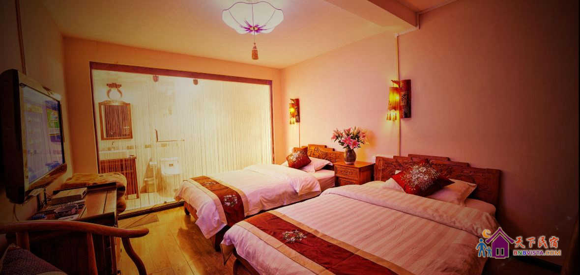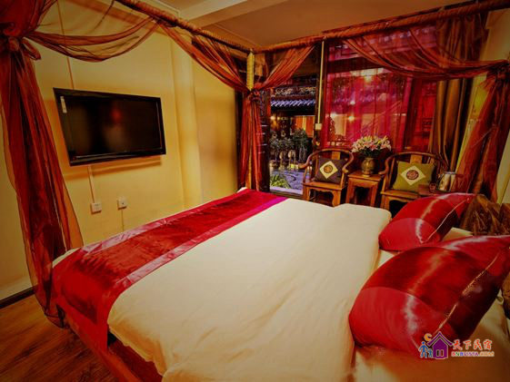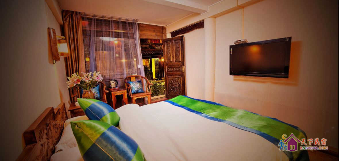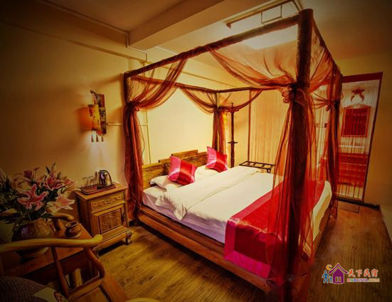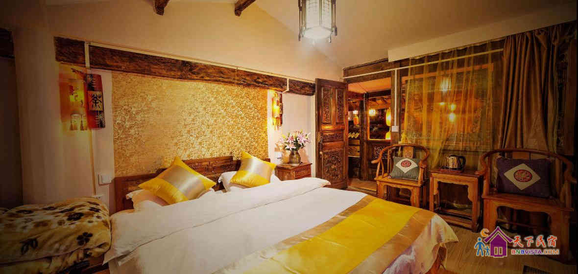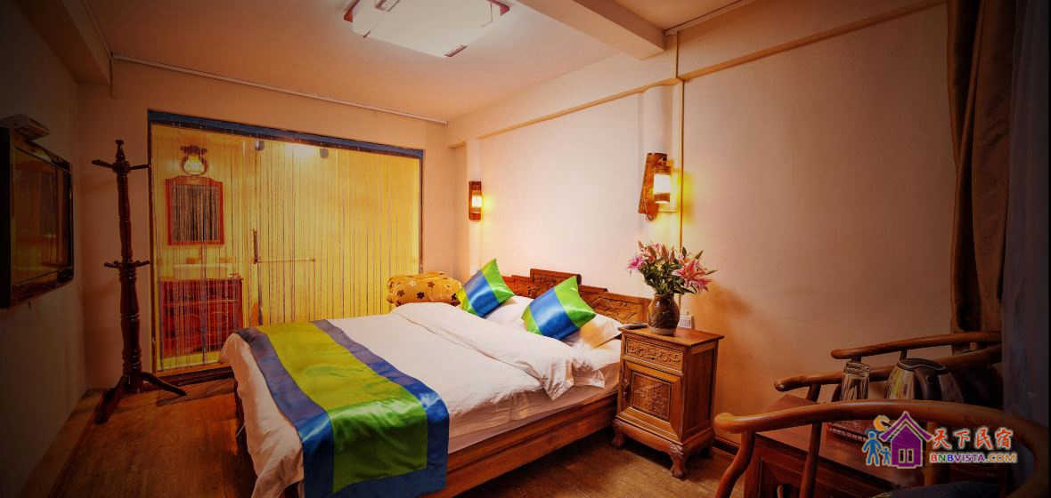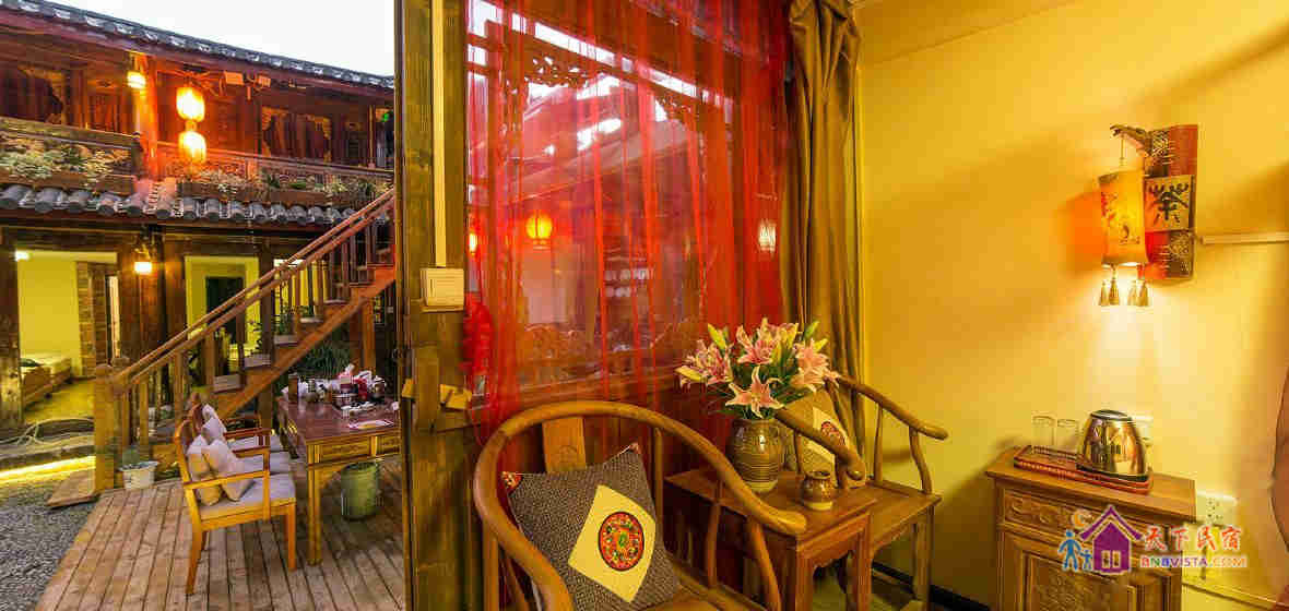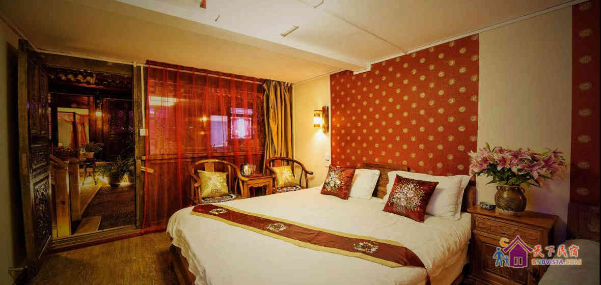 每间房均设有高档中式家私、床垫、羽绒被、羽绒枕、毛绒毯;卫生间均配有浴霸及全套洗浴用品,舒适的环境让你在丽江找到家的感觉。