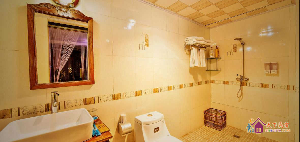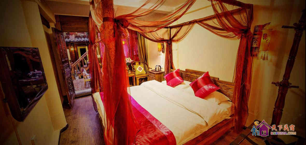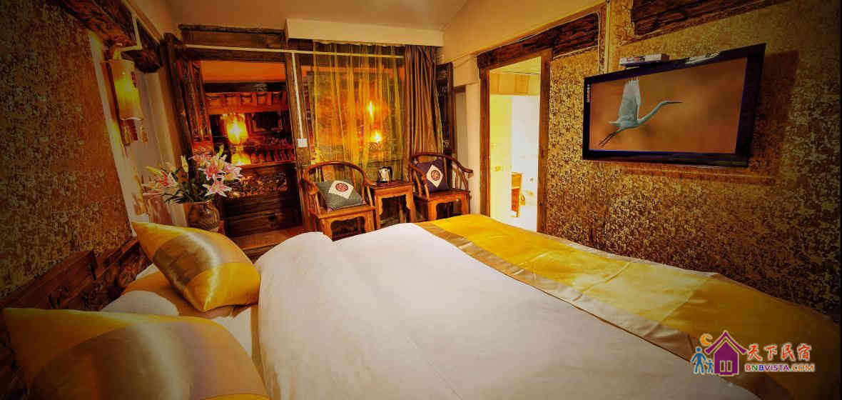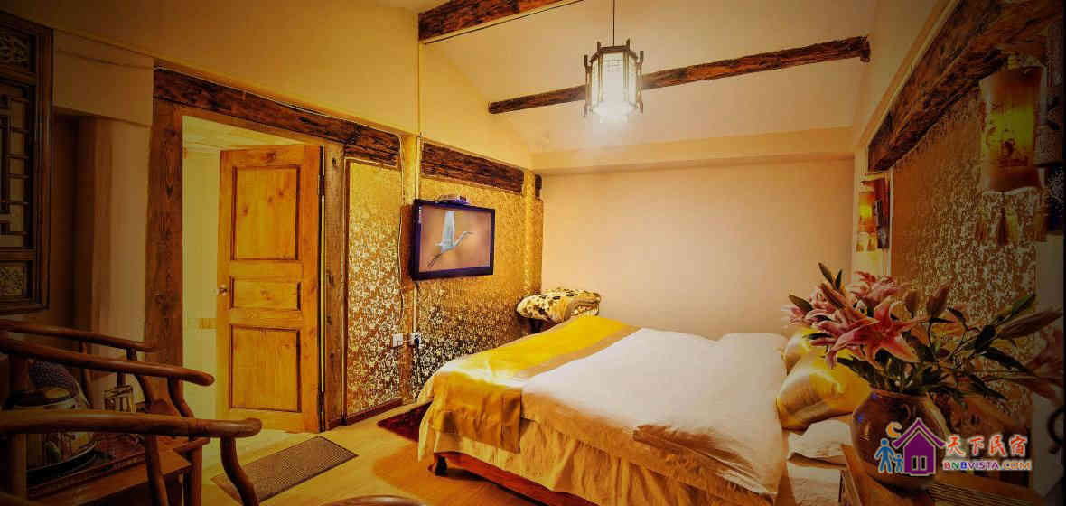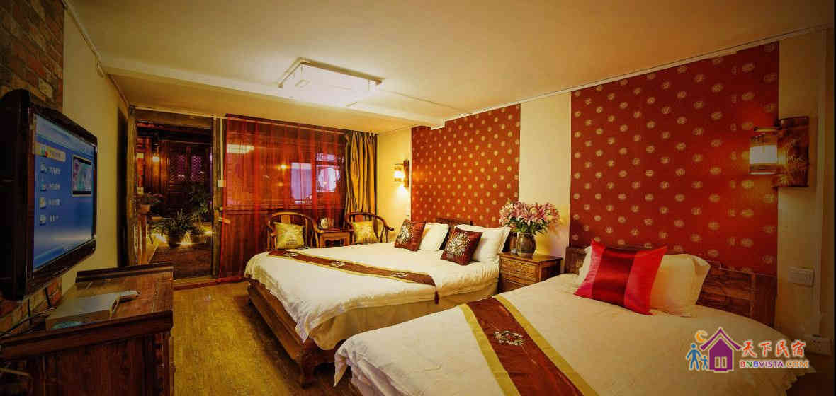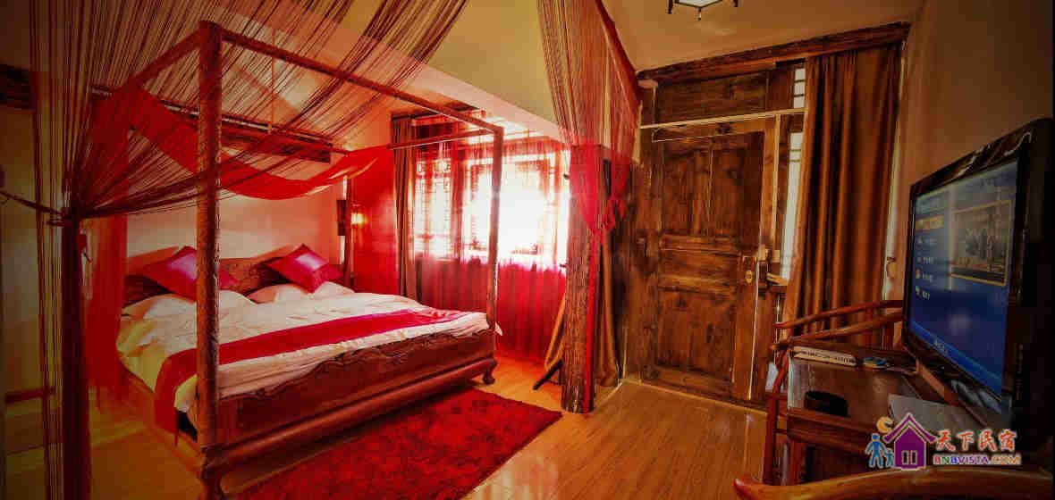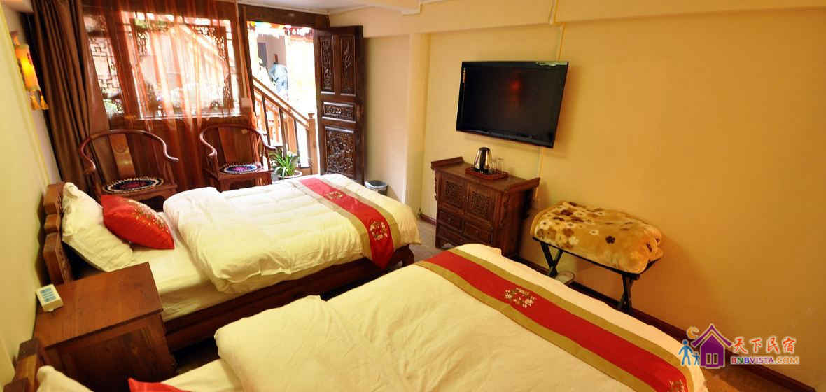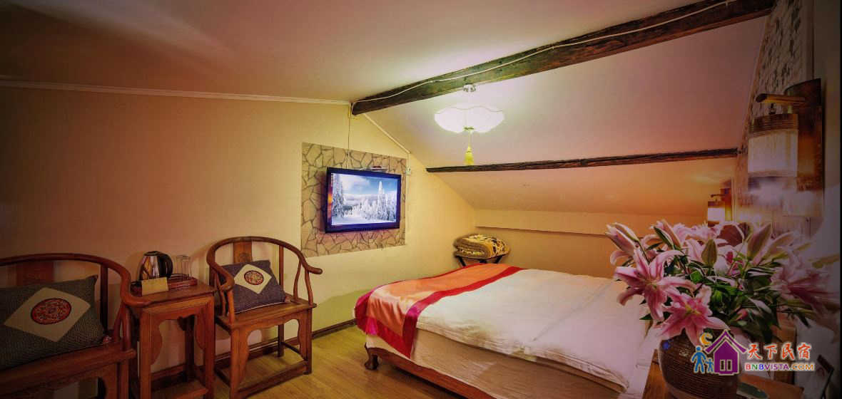 每间房均设有高档中式家私、床垫、羽绒被、羽绒枕、毛绒毯;卫生间均配有浴霸及全套洗浴用品,舒适的环境让你在丽江找到家的感觉。