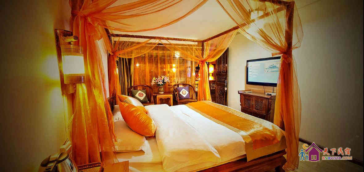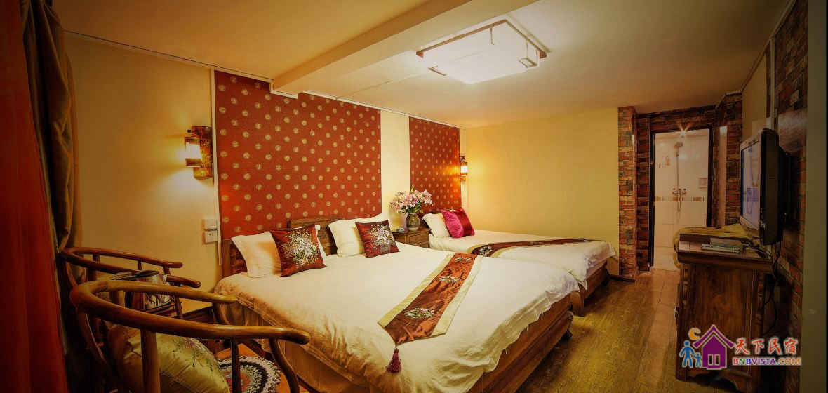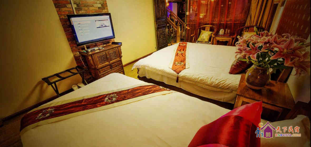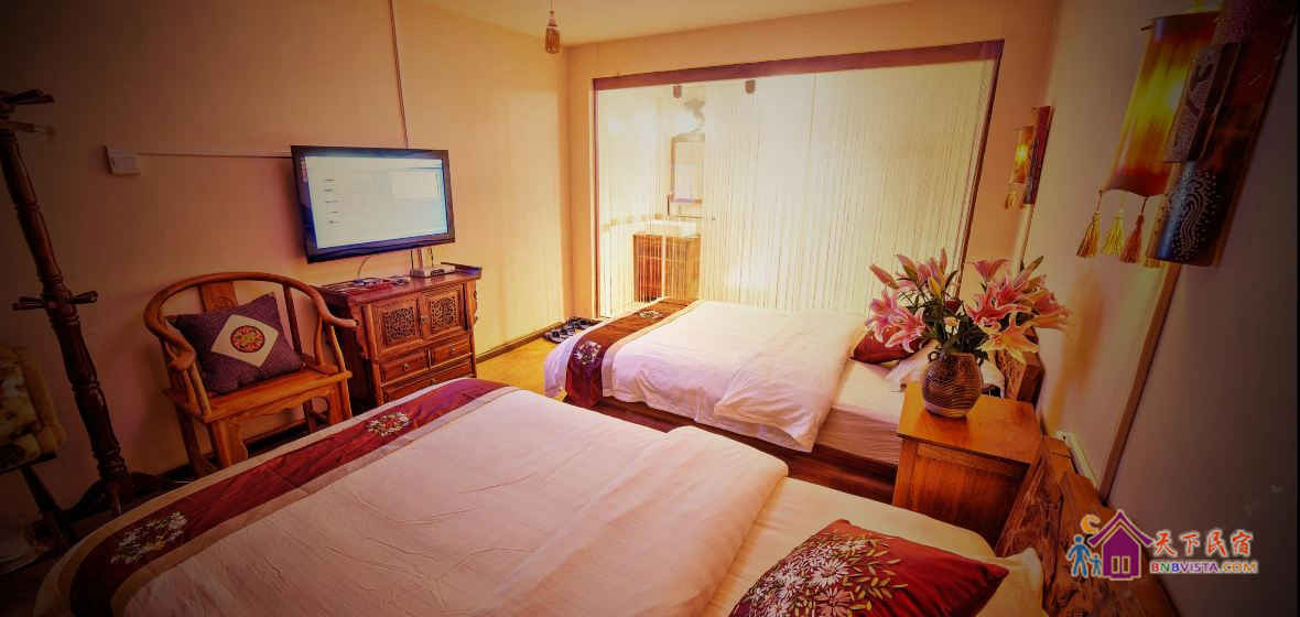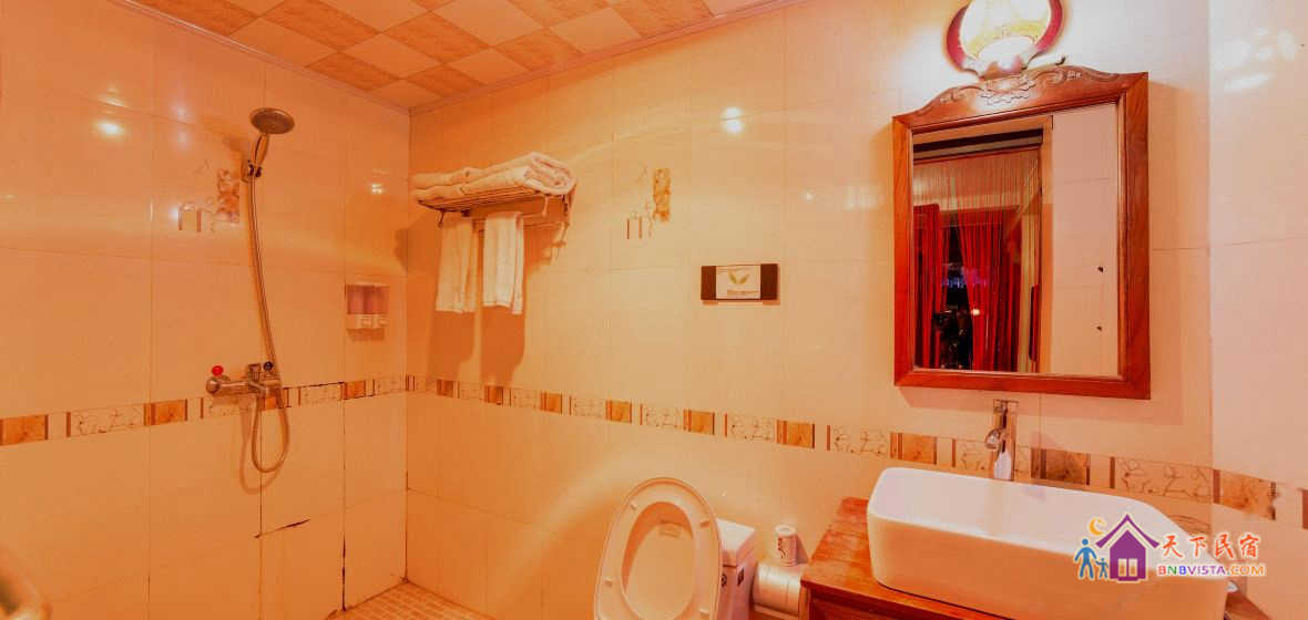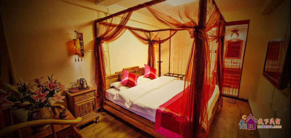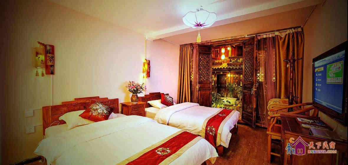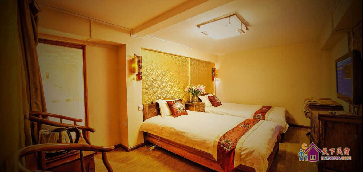 每间房均设有高档中式家私、床垫、羽绒被、羽绒枕、毛绒毯;卫生间均配有浴霸及全套洗浴用品,舒适的环境让你在丽江找到家的感觉。