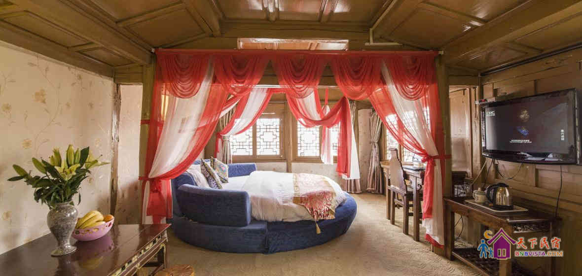 - 所有房型: 梦幻空间榻榻米,豪华蜜月大床房,特价大床房,雅致院景双床房,纱幔观庭大床房,必有温馨三人间,观景复式套房