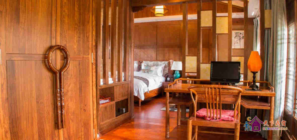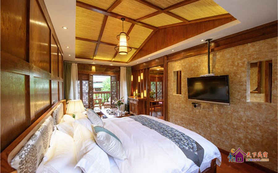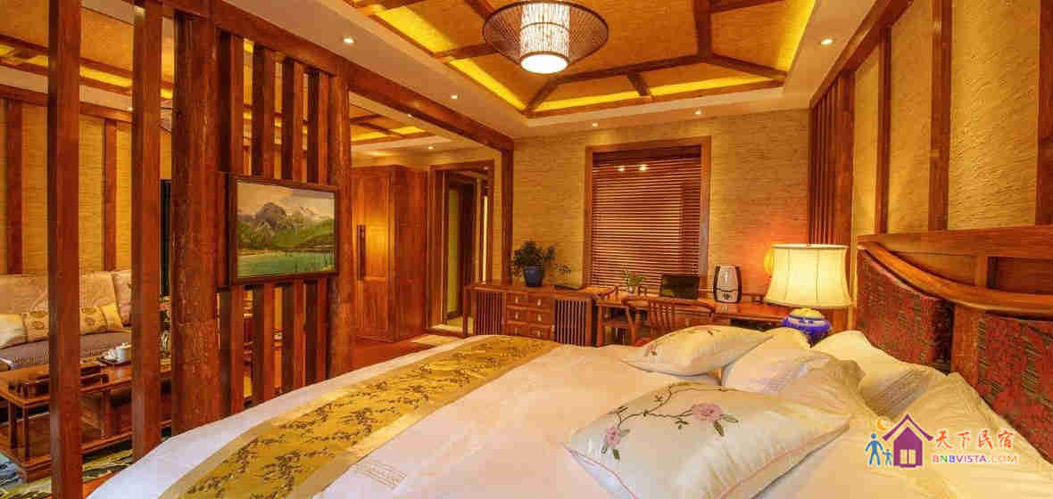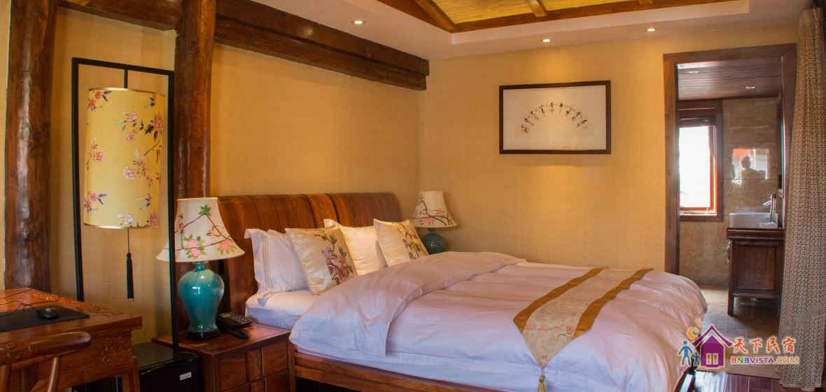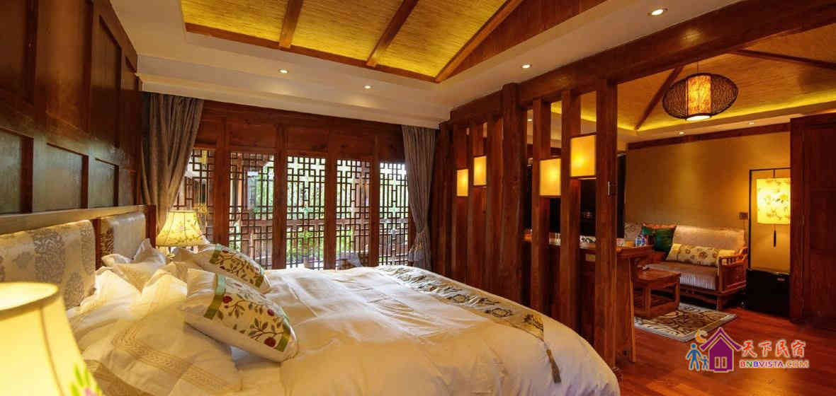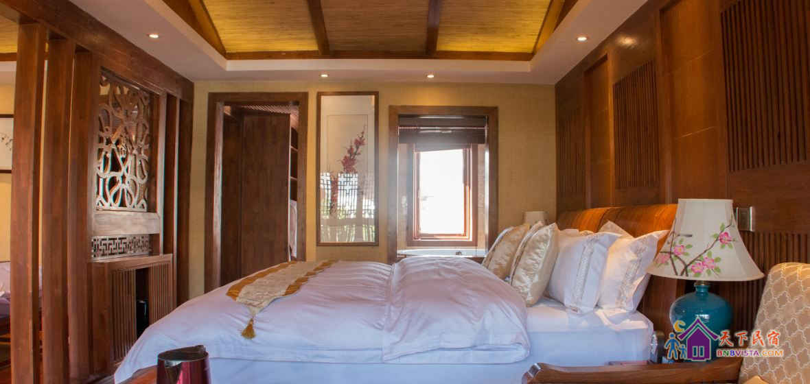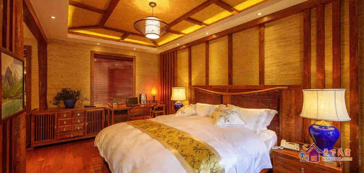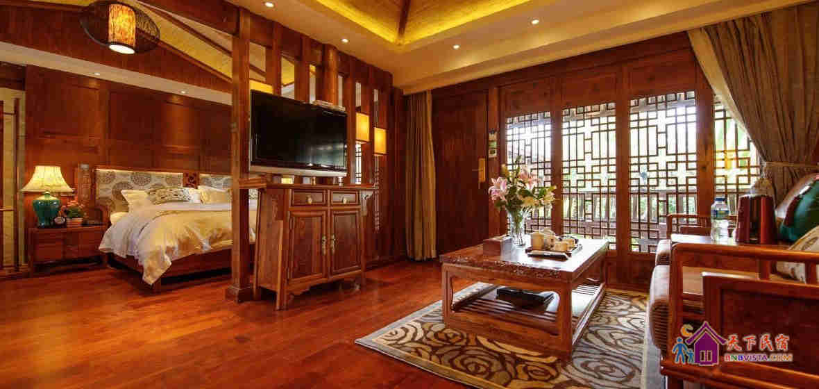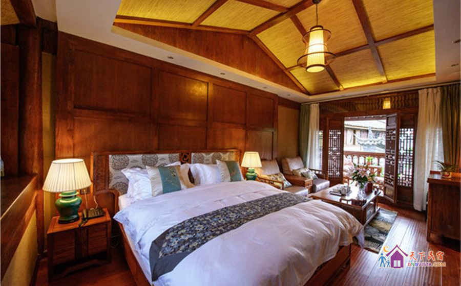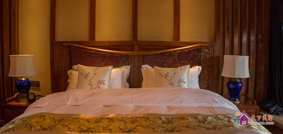 2、硬件设施高档。花梨木的家具;澳洲进口的鹅绒被;TOTO的洁具;舒适的乳胶床垫;温暖的壁炉和地暖。