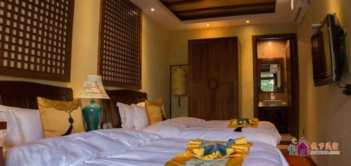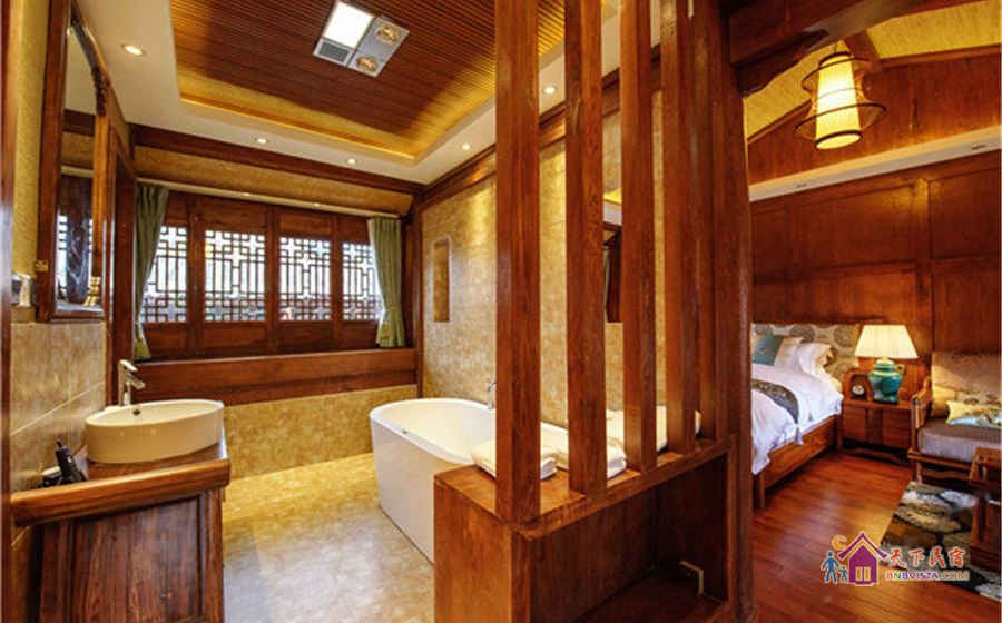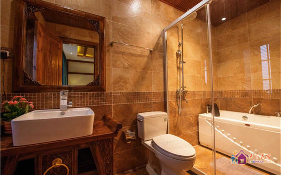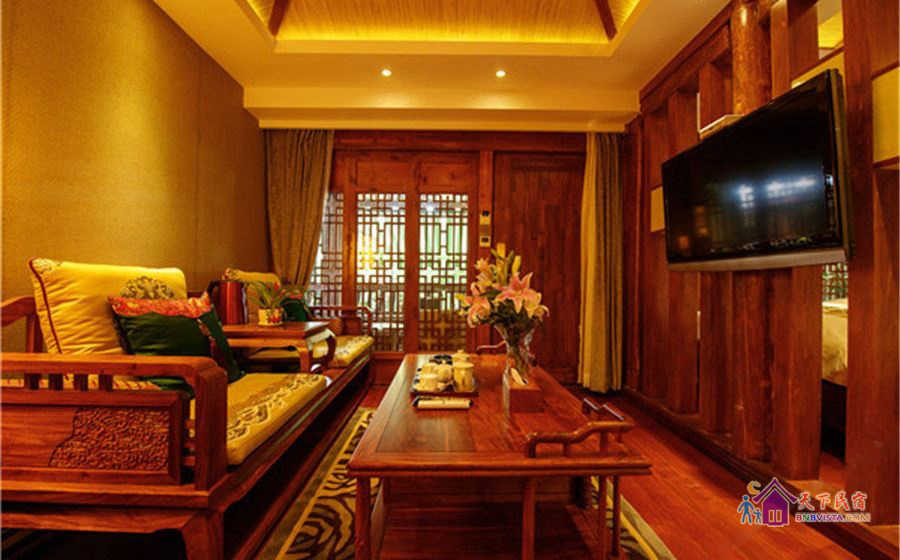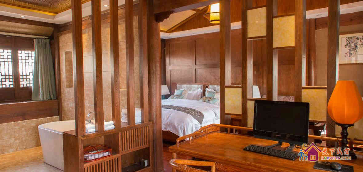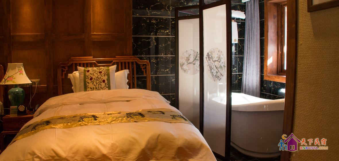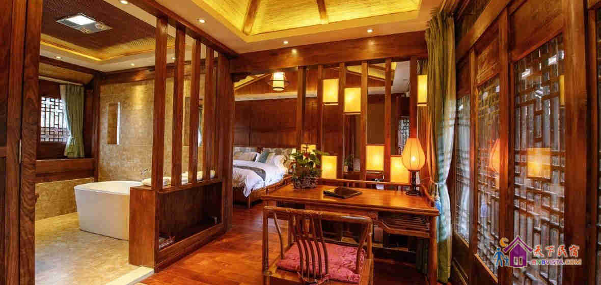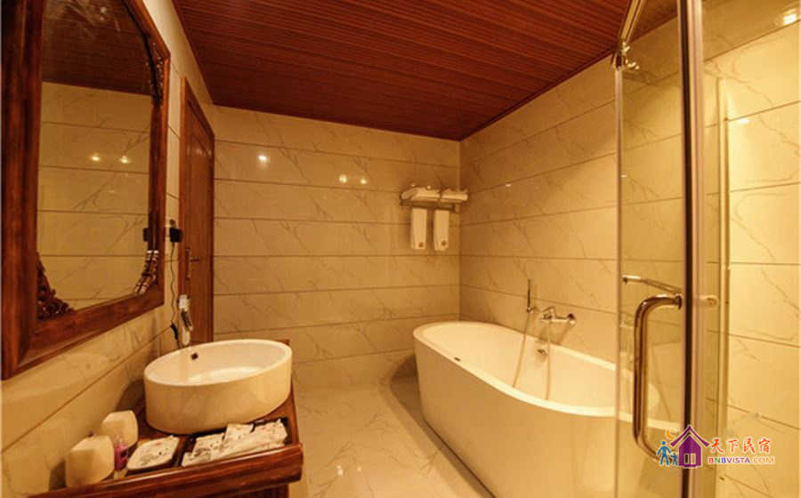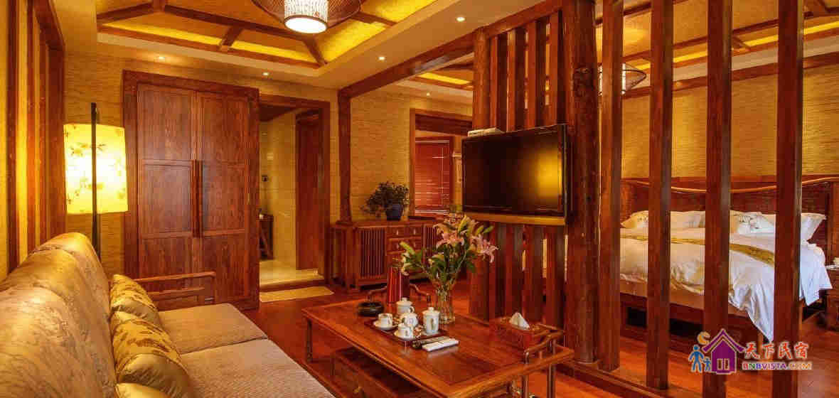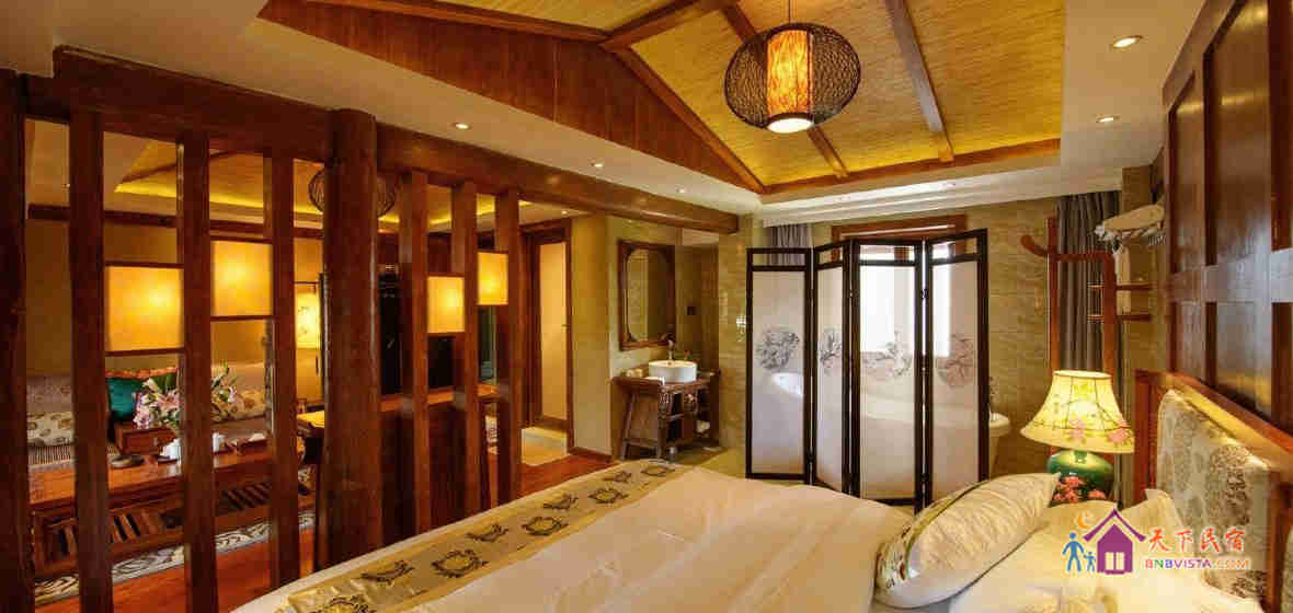 2、硬件设施高档。花梨木的家具;澳洲进口的鹅绒被;TOTO的洁具;舒适的乳胶床垫;温暖的壁炉和地暖。