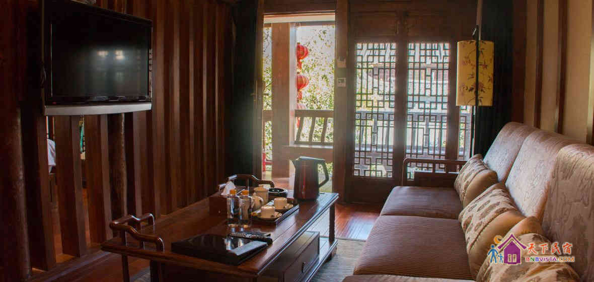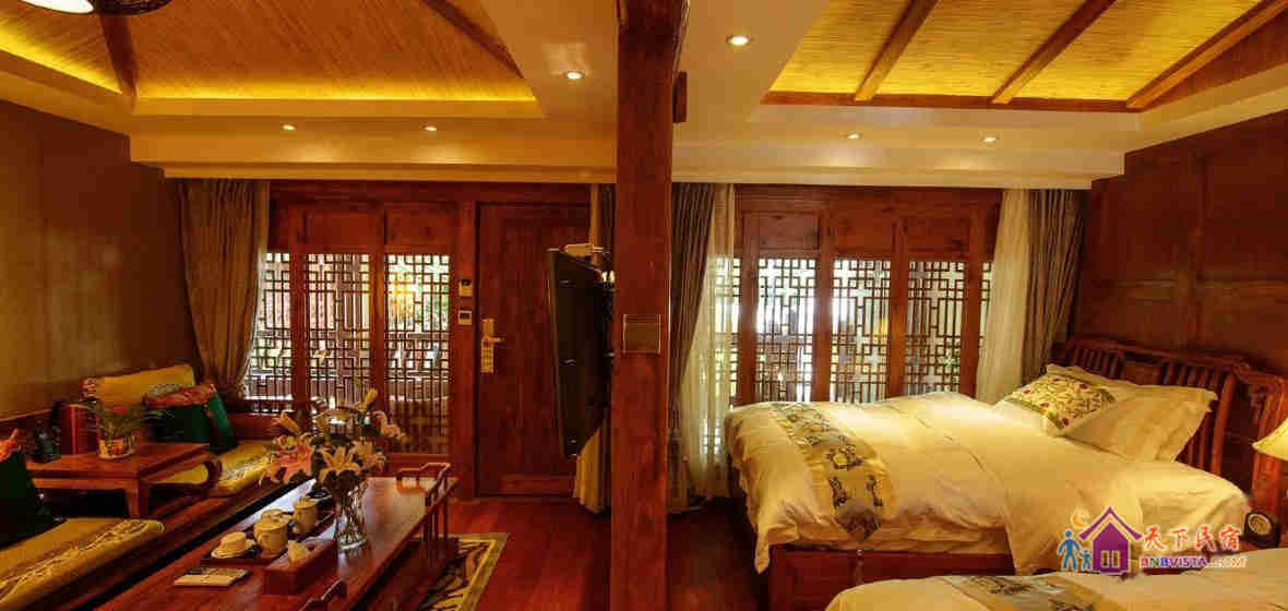 酒店特色:闲来居客栈是一座按照五星级标准建造的集住宿、品茗、棋牌、3D影院、私房菜于一体的高端休闲客栈。按照纳西族三坊一照壁的传统建筑风格,分前、后两个院落。