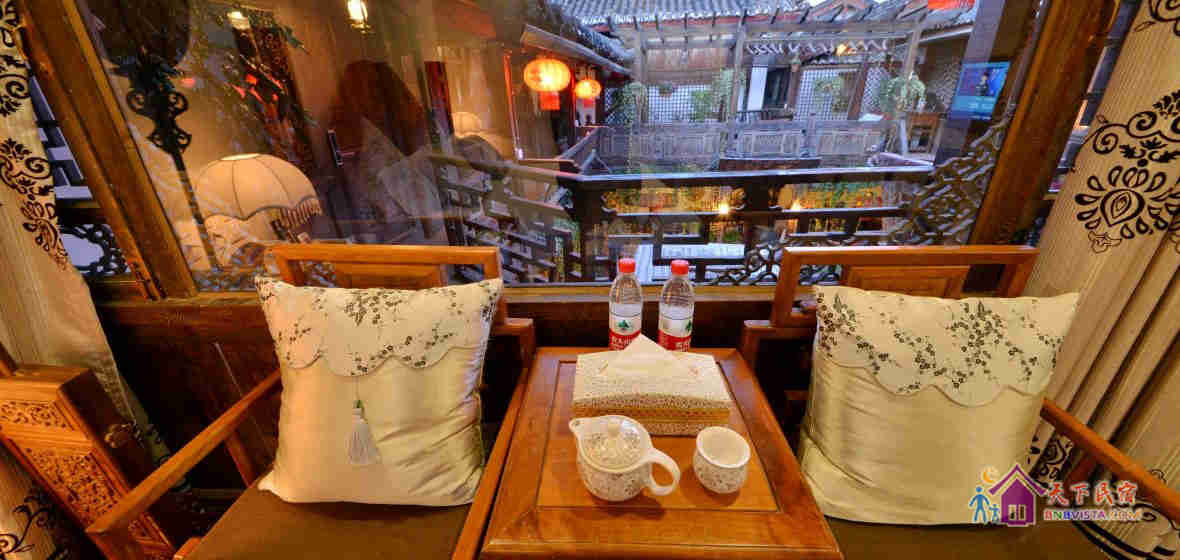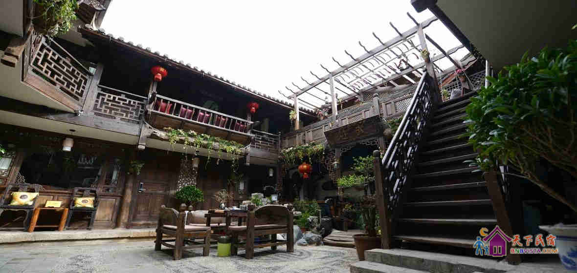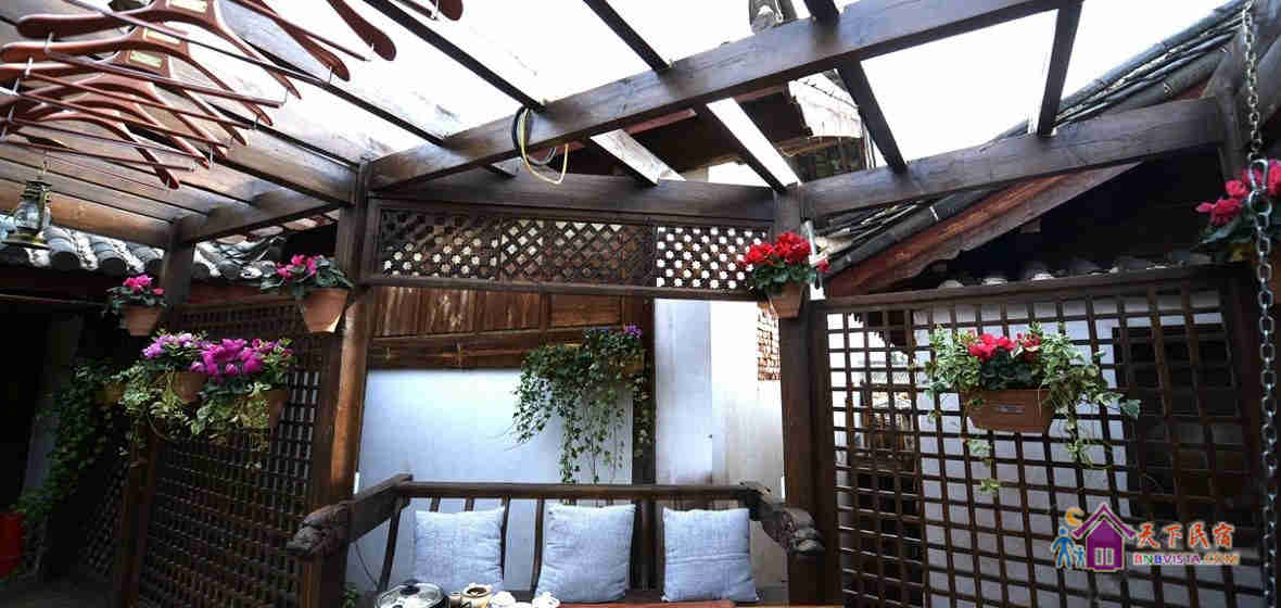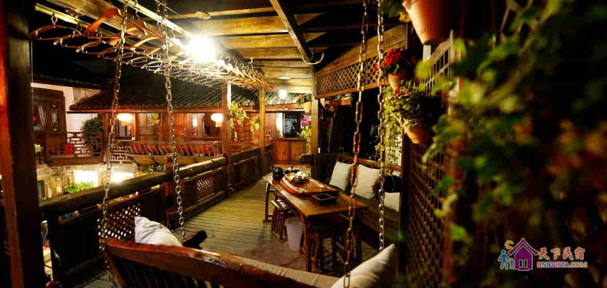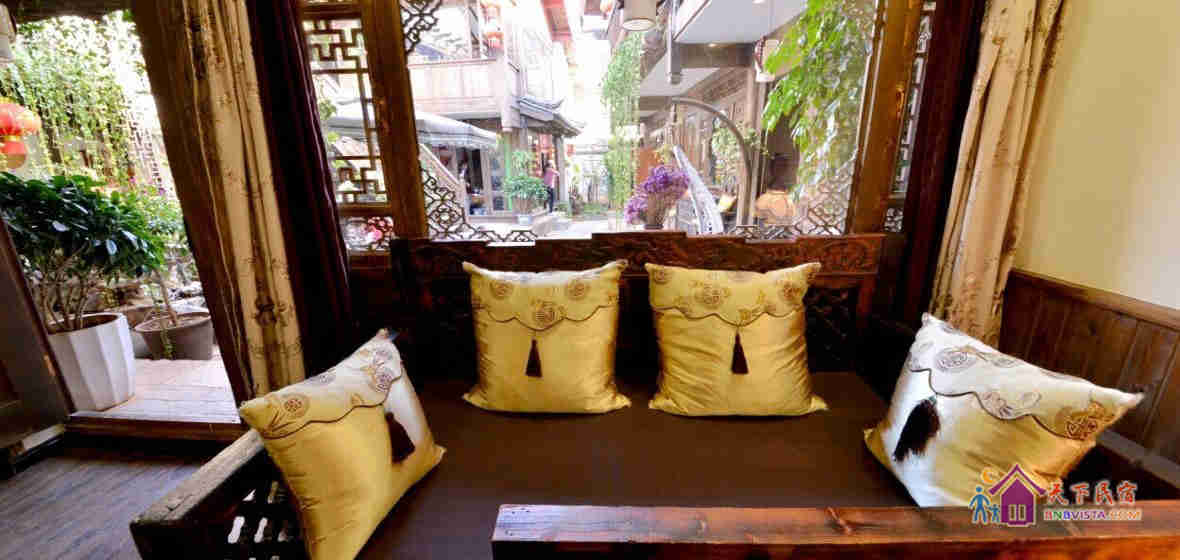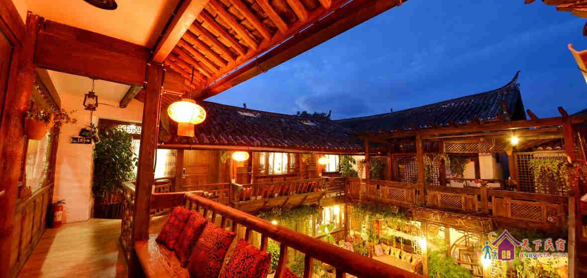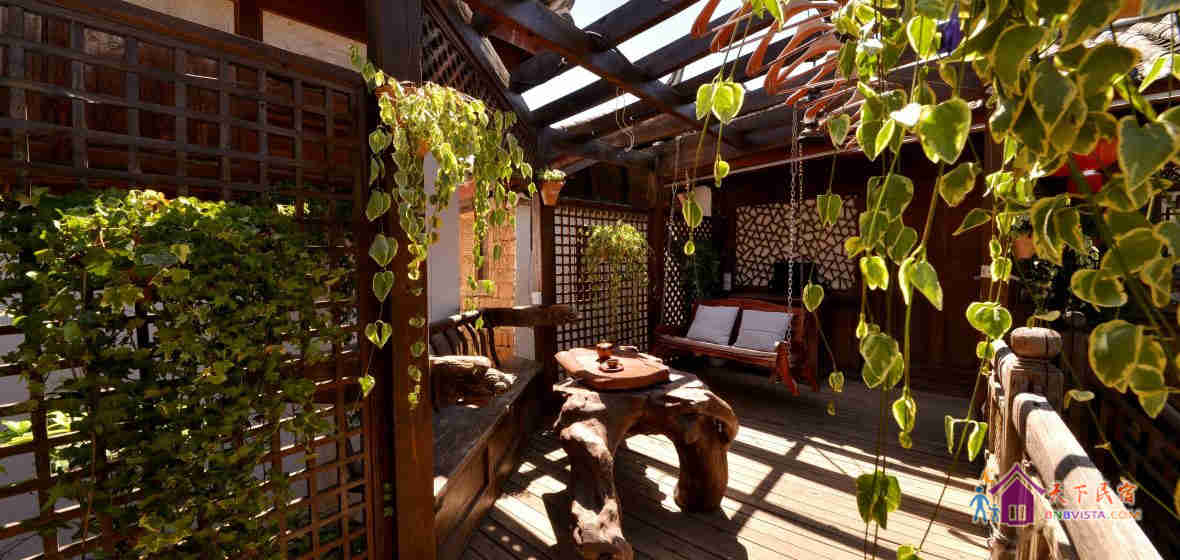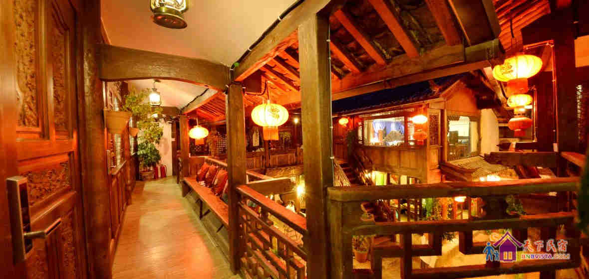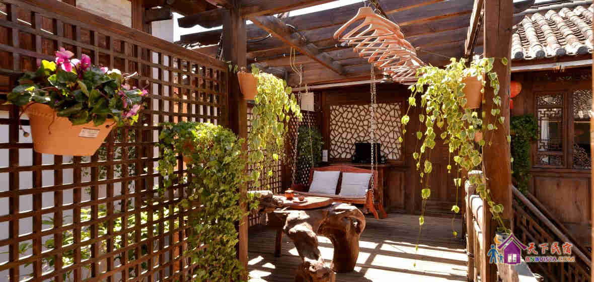 为使客人在客栈感觉更加悠闲自在,在房屋外还加设栏杆,做成回廊型木椅,是整体感觉非常原生态的一座纳西民居古建筑。