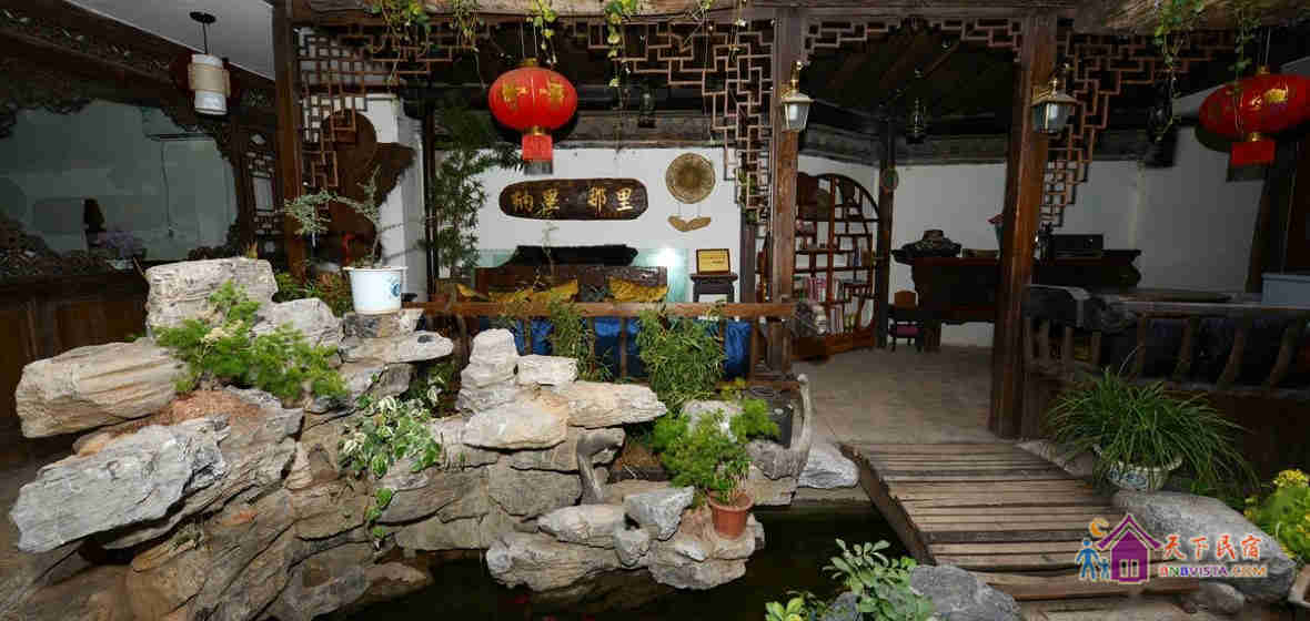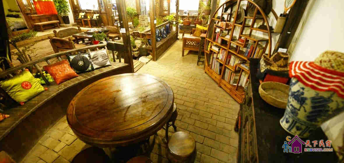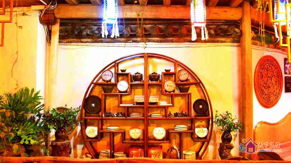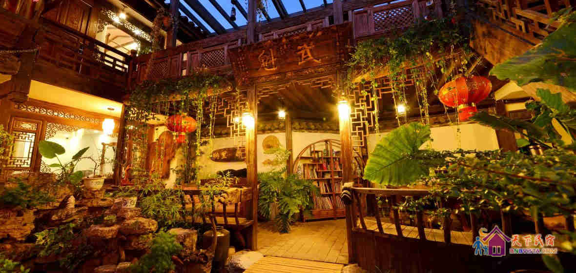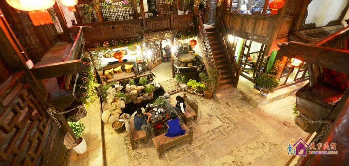 客栈外墙爬满的嫣红三角梅,远远看去似一树繁华,高高挂着的大红灯笼,在微风中把一切温暖过往收入眼底,门廊走道上方成片风铃像一道彩虹,轻风吹过,叮叮当当,悦耳动听,图案雅致的鹅卵石地面,蔓延的藤蔓,水池中悠游的金鱼,青石的假山,在洒满阳光的茶室,喝一盏回味深长的普洱,雅案上的古筝,缓缓流淌出古老的弦音,这里浓郁的人文气息,古朴而典雅。