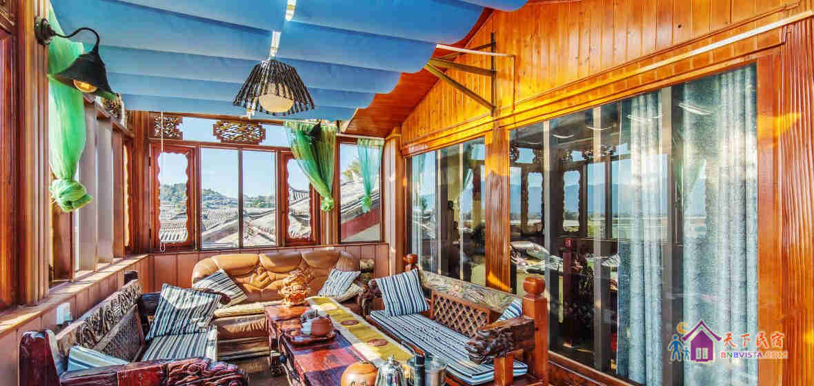 这里拥有古色古香的居住环境、丰富多彩的公共场所、细致周全的管家服务;为您带来绿意浓浓的庭院、幽雅精致的廊道、整洁安静的房间、能将古城美景尽收眼底的顶楼休闲小站等……在这里,你可以荡秋千、烤太阳、赏花、看鱼儿戏水、品纳西小吃、下棋搓麻;也可在顶楼远眺古城全景、围着火塘取暖、聊天,尽享丽江特有的安逸和美好。