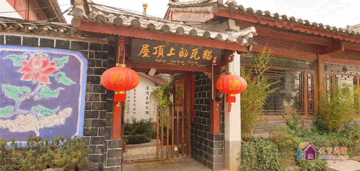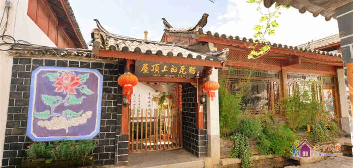 丽江屋顶上的瓦猫小栈是充满阳光的传统纳西风格小院,外观古朴别致,灰黑色的屋瓦、白墙、木窗连成一片,一派古典韵味;客房布置简约清雅、通风采光佳,设有多款房型,每款皆有一个别致的名;房内配置柔软的床榻、深色实木家私、品牌卫浴设施,完善齐全。