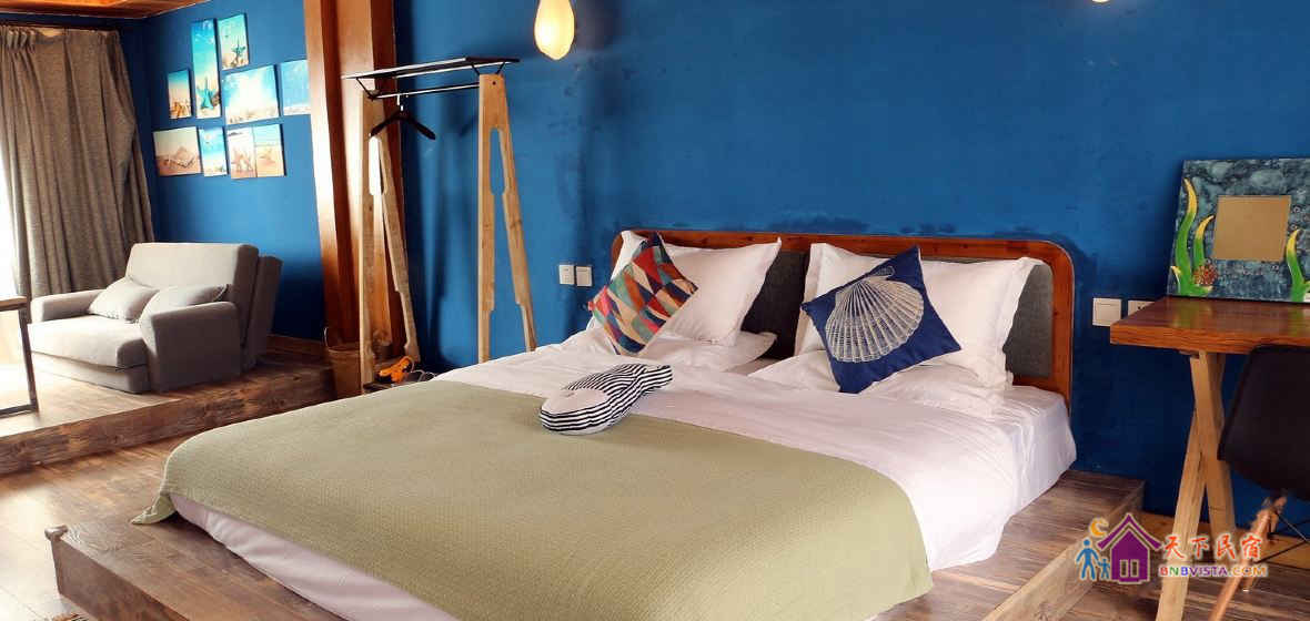 亲的客栈美丽岛位于丽江束河古镇,是一座极具日式和北欧风格的客栈。岛主希望它像星空像深海像湖泊像原野像丛林,所以在美丽岛在这五彩的云之南,被喷刷成蓝绿两种主色调。60平米的书房,100平米的客厅兼酒吧,70平米的电影院兼会议室,300平米大庭院,三个大露台,美丽岛拥有非电商背景不能设想的软硬设施。每一位住客都是美丽岛的居民,每一位寄予希望和祝福于它的都是主人。这是我们的岛。