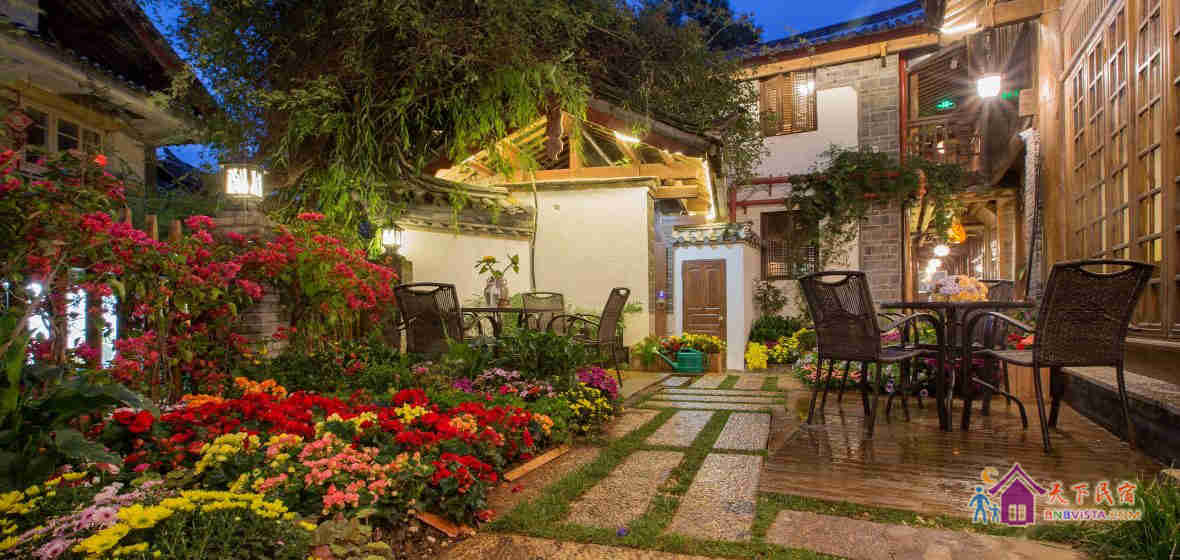 花筑·丽江古城木府栖溪客栈提供友好,热情的贴心服务,除了茶室,书房,西餐厅,自助厨房以及2个鲜花环绕的庭院供客人使用外,在客房寝具和用品上,均按照星级标准配置。客栈独有的平等、轻松、快乐的文化氛围,悠闲的下午茶,以及周末或应客人要求举办庭院露天烧烤派对,都会给您丽江之行留下美好的回忆。尊重历史与传统,追求雅致和时尚。丽江叠泉唯美私人度假客栈——友好,轻松的快乐驿站。