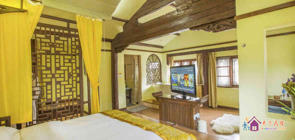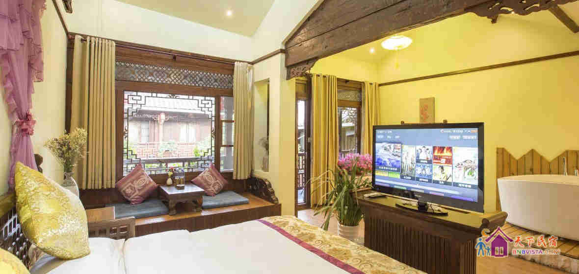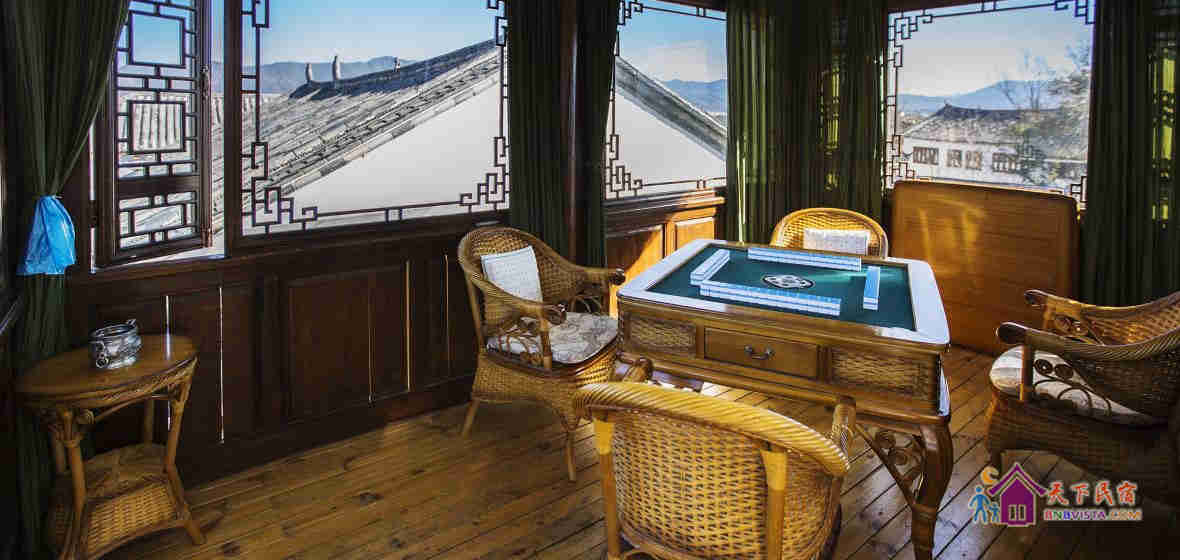 丽江云裳纳美精致客栈整个建筑结构延续传统纳西民居风格,二楼的每个房间屋顶都有一扇天窗,蓝天白云,星光月影,一览无余。