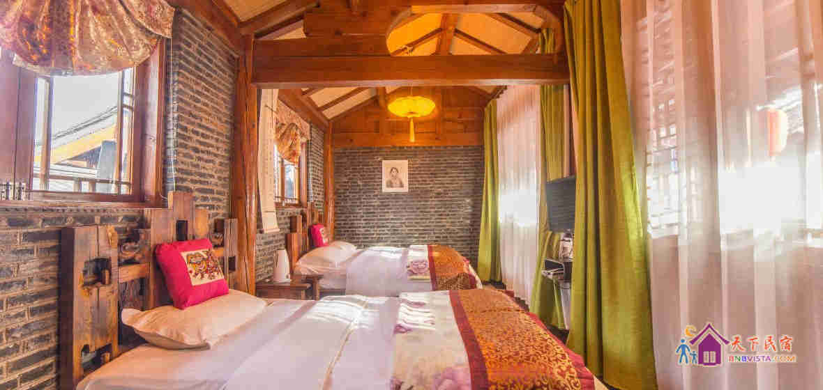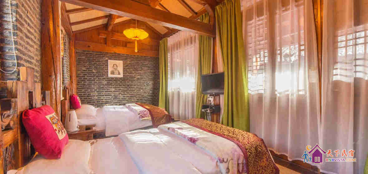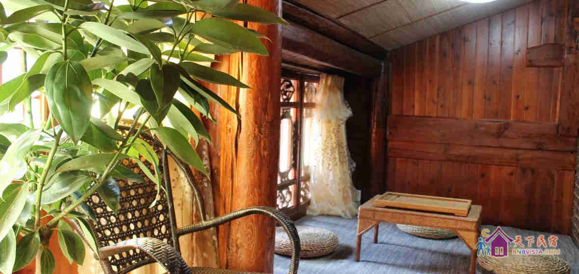 客栈配备浓厚民族文化特色的家具还可提供茶品、水果以及自助火塘烧烤;客栈的掌柜就是喜欢丽江的慢生活,喜欢发呆,喜欢晒太阳,喜欢丽江的无所事事,舍不得离开,开了一个小小的客栈,有6间客房身处院中,你可以抛去烦恼,远离闹市的喧嚣,忘记时间,或悠然的看着蓝天,或闲散的翻着杂志。