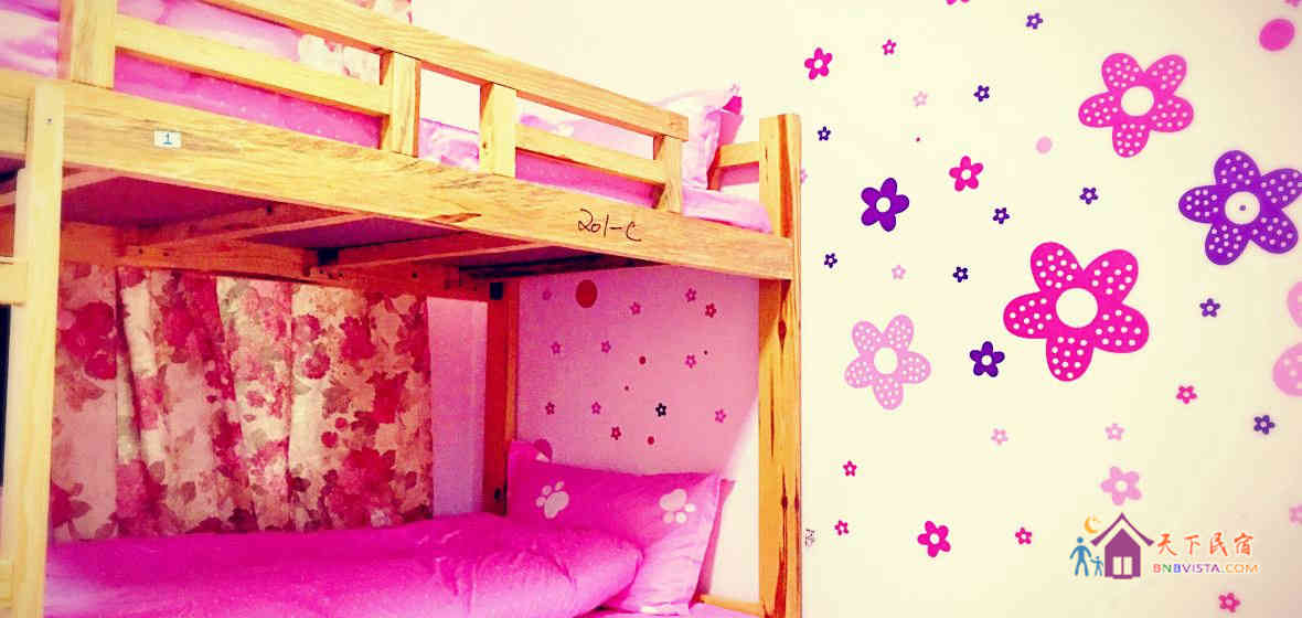 - 所有房型: 民族风大床房,男生四人床位间,Hello Kitty 大床房,女生四人床位间,家庭房,花花世界家庭房,地中海大床房,蜜月房