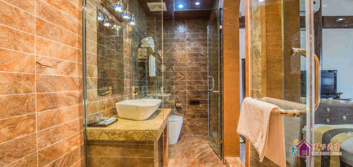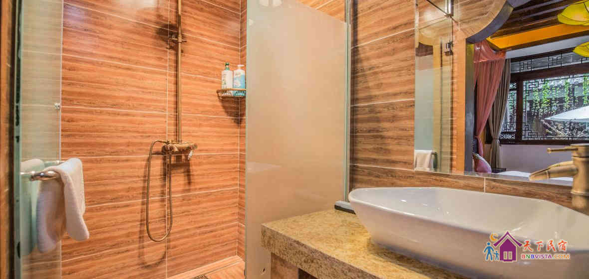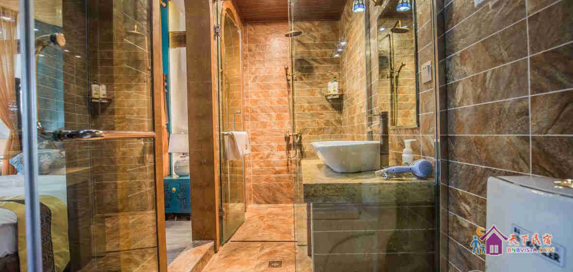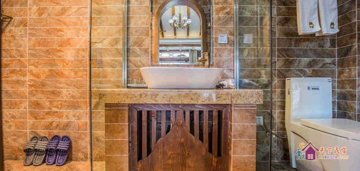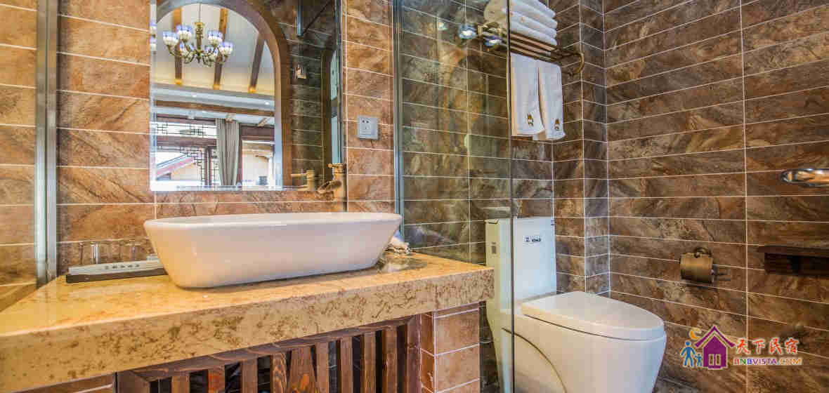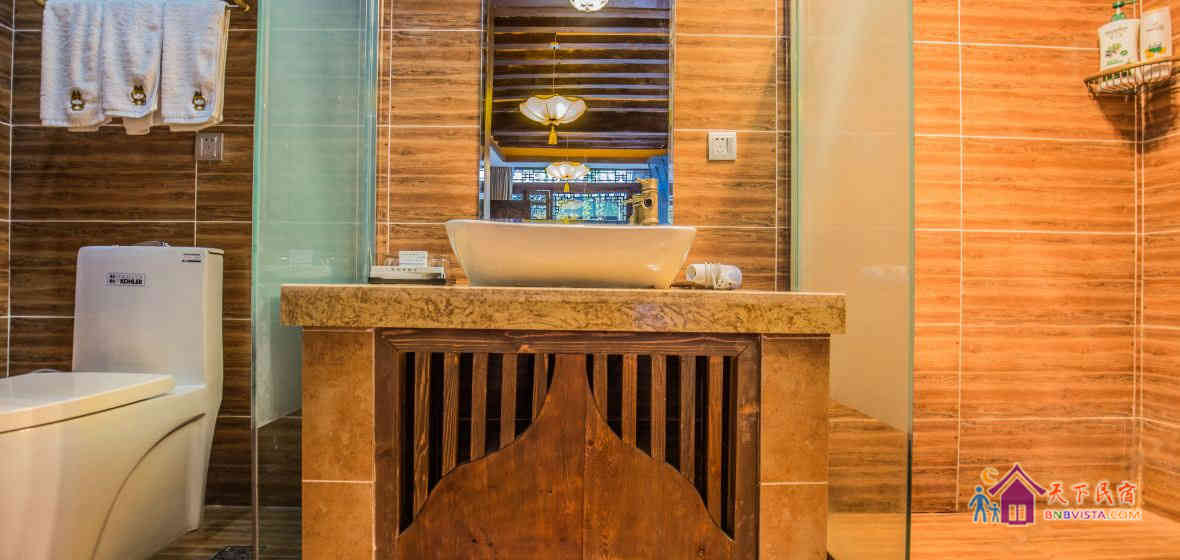 该客栈充满情调与温馨的氛围,有不同类型风格的房间,简约中充满地方特色的情调,且室内各项设施都有配置,有白族工匠耗时多日雕刻的各色家具,有科勒的马桶和面盆,还有精心包装的普洱和茶具套。