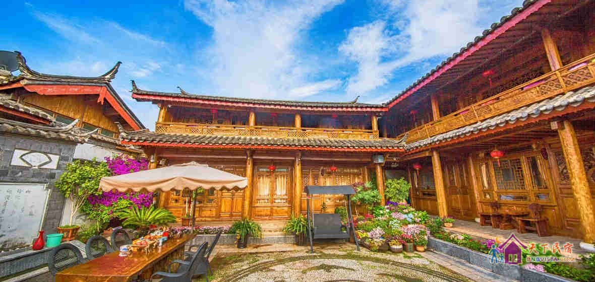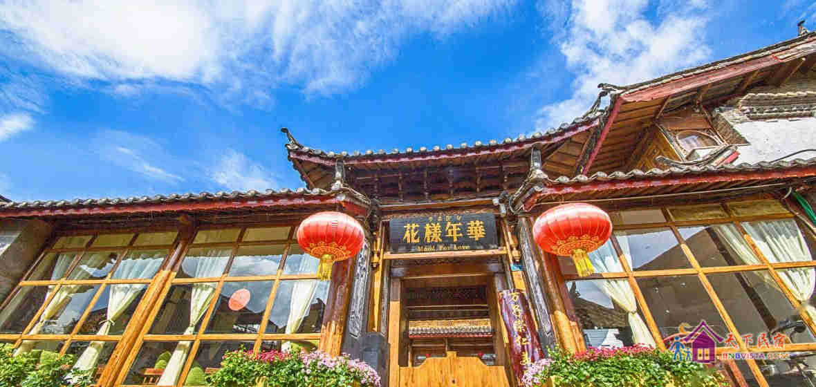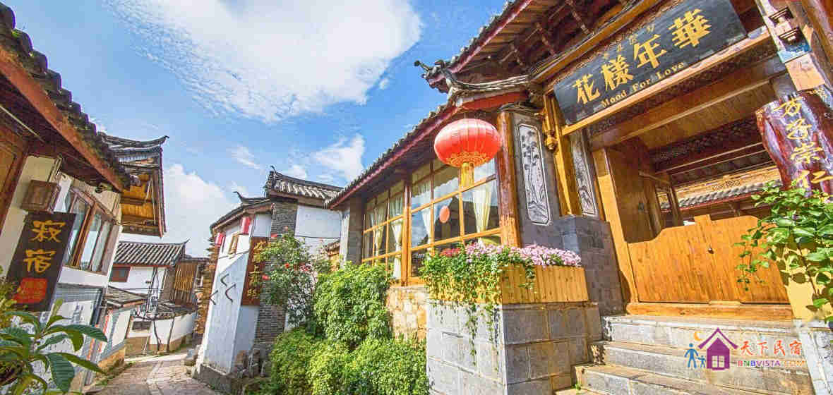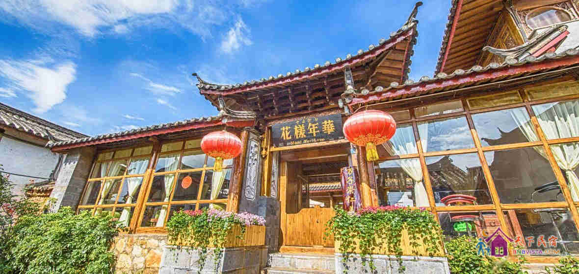 丽江古城花样年华风情花园客栈属古城纳西原始风貌民居,经典的“三防一照壁、四合五天井”纳西大户庭院,庭院内溪水环绕,移步换景、花木扶疏,更有五彩石、青灰砖瓦,集幽雅与便利于一身。四百平米的纳西庭院落落大方,奇花异草错落有致地沐浴在风和日丽下,意兴盎然。