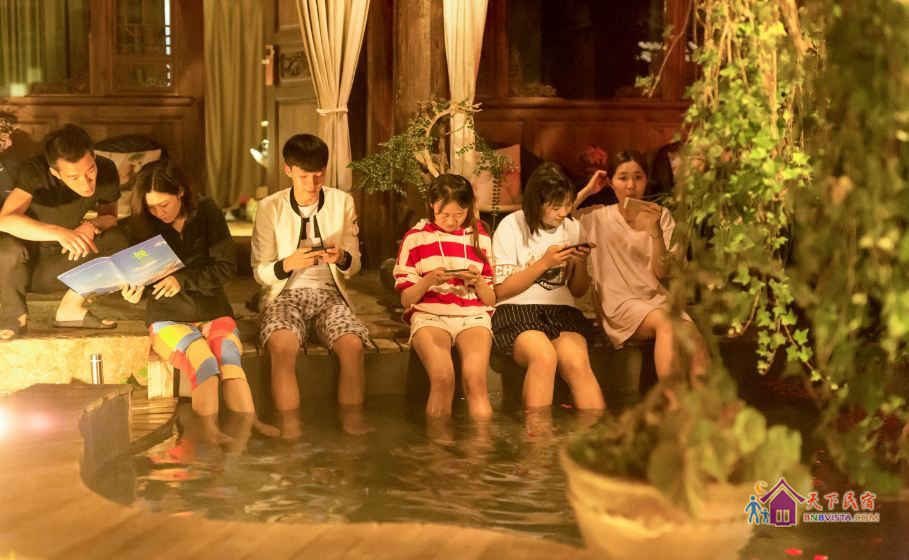 在这里,你不必疲于奔命赶景点。庭院、音乐、灯光;绿植、茶艺、温泉、书香等一切的一切将你深陷其中。