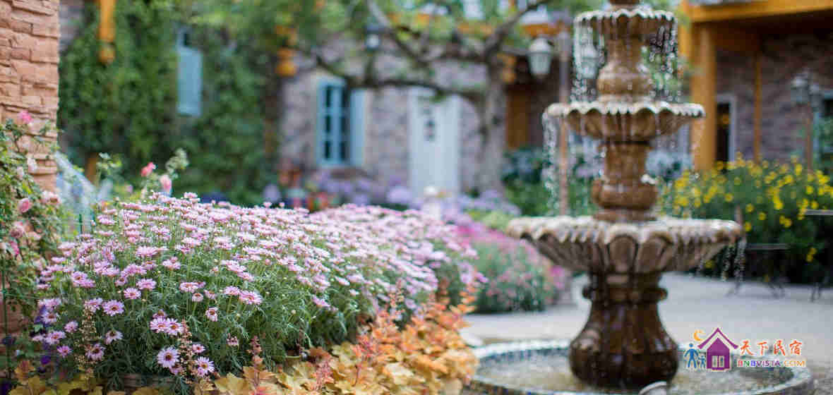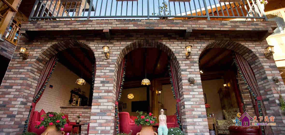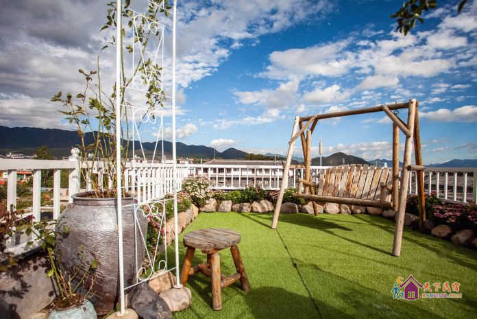 客栈为欧式乡村风格设计,以花卉为主题,分为前院和后院,分别由茉莉小镇中心花园、花园餐厅、屋顶花园三个不同视野的花园贯穿其中,宁静而舒适的院子布满各类花草,让您沐浴在花丛中,美得沉醉。屋顶花园可远眺玉龙雪山,束河古镇的美景也尽收眼底,花园早餐厅则被各类鲜花簇拥着。