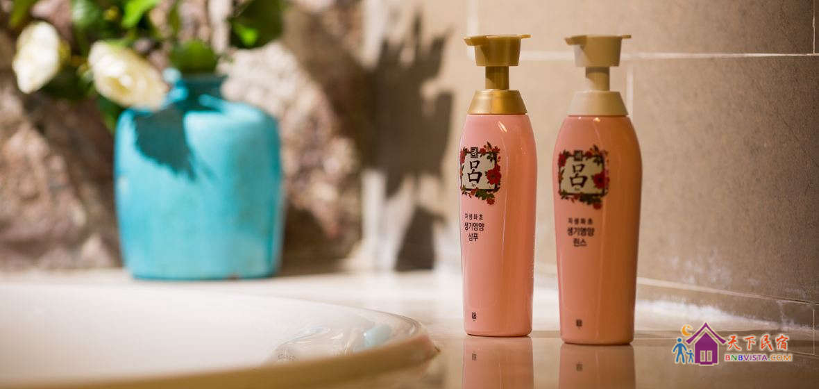 房间还有40寸超薄液晶电视、JBL苹果音箱、一体机电脑、无线20M高速网络、YADU加湿器、美国进口PEX地暖,卫生间有科勒洁具、特质浴巾毛巾、Dove沐浴露洗发水护发素、飞利浦吹风机。