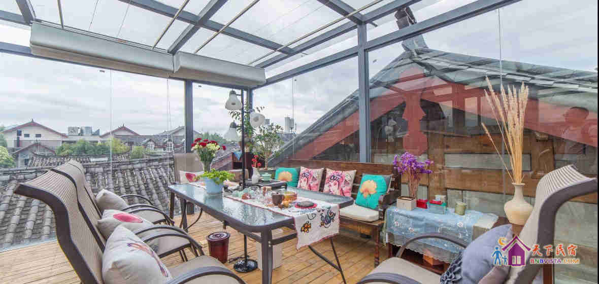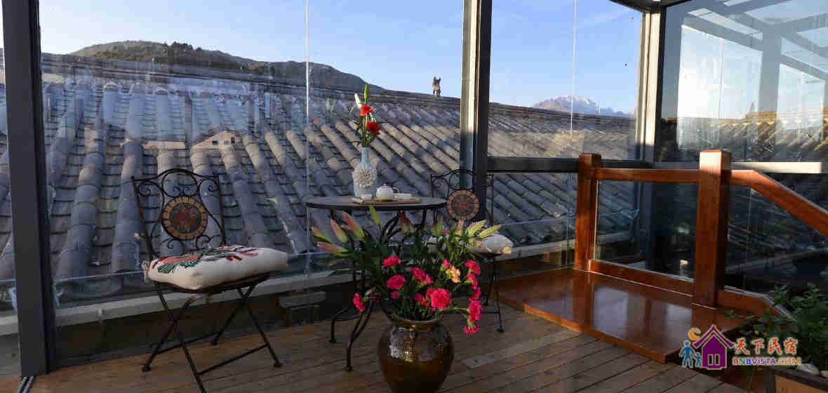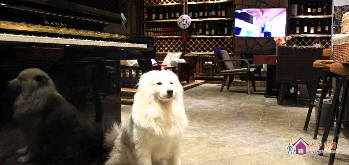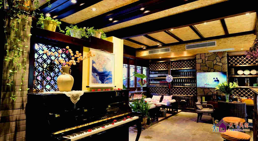 1楼大厅、花园,2楼长廊和3楼的玻璃阳光房,可品茶、聊天、看书、写字、弹琴、晒太阳、观雪山,尽享每刻甜蜜。钢琴、古筝、笔墨纸砚、茶香雅器和