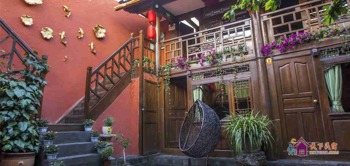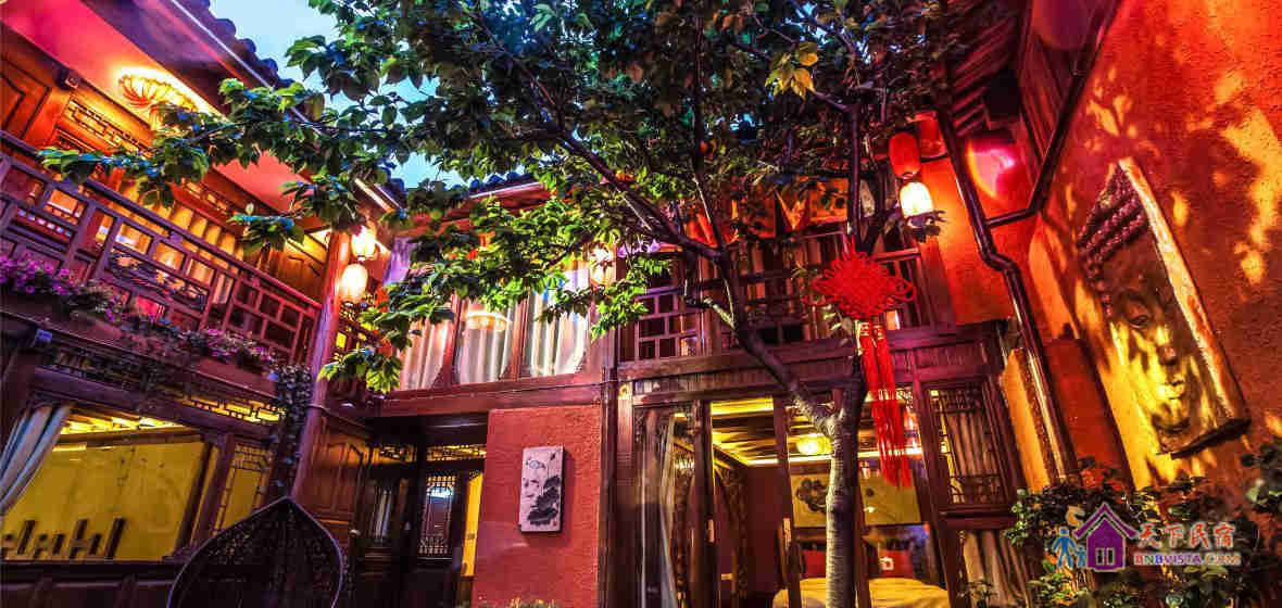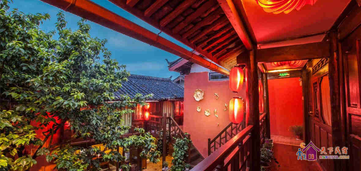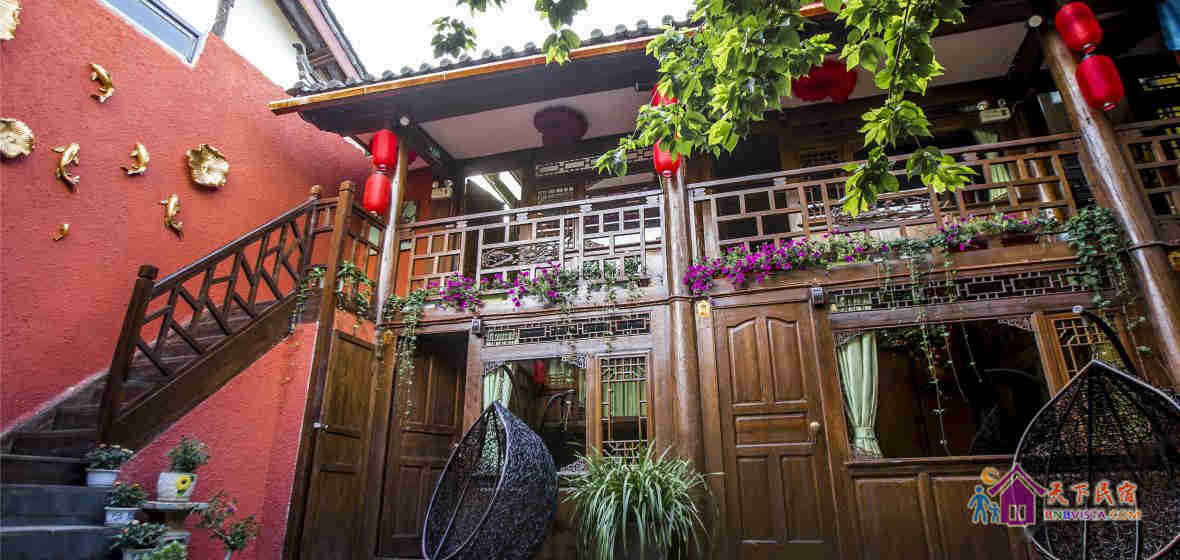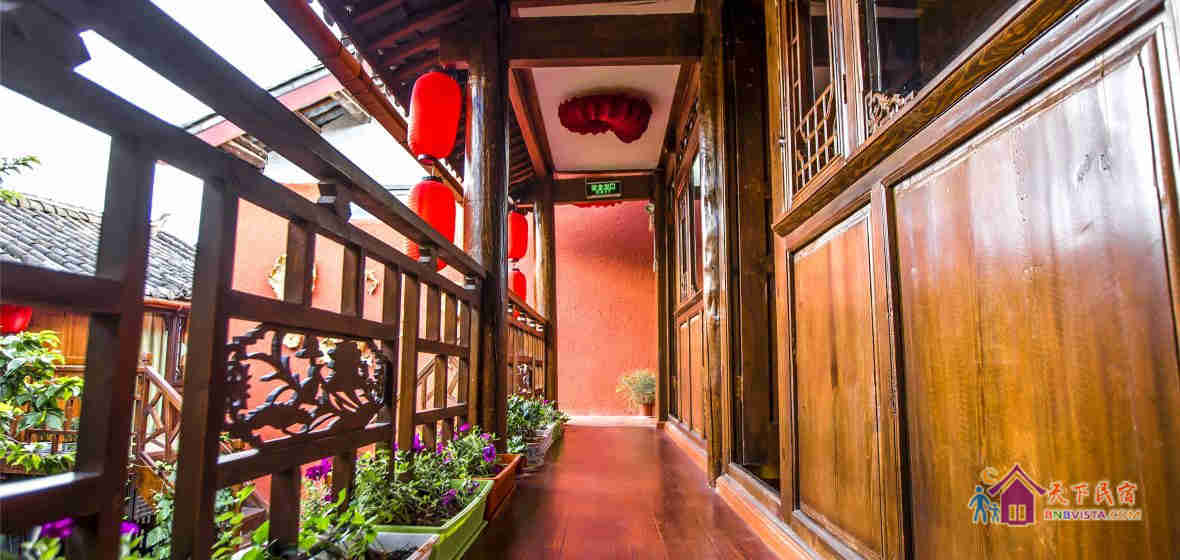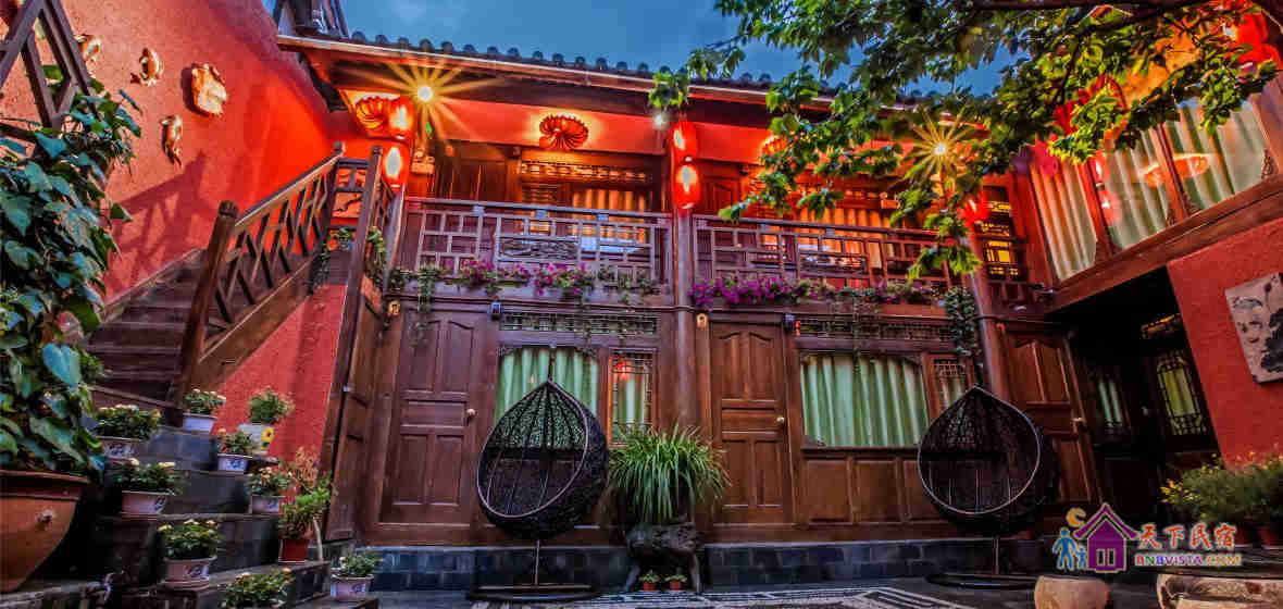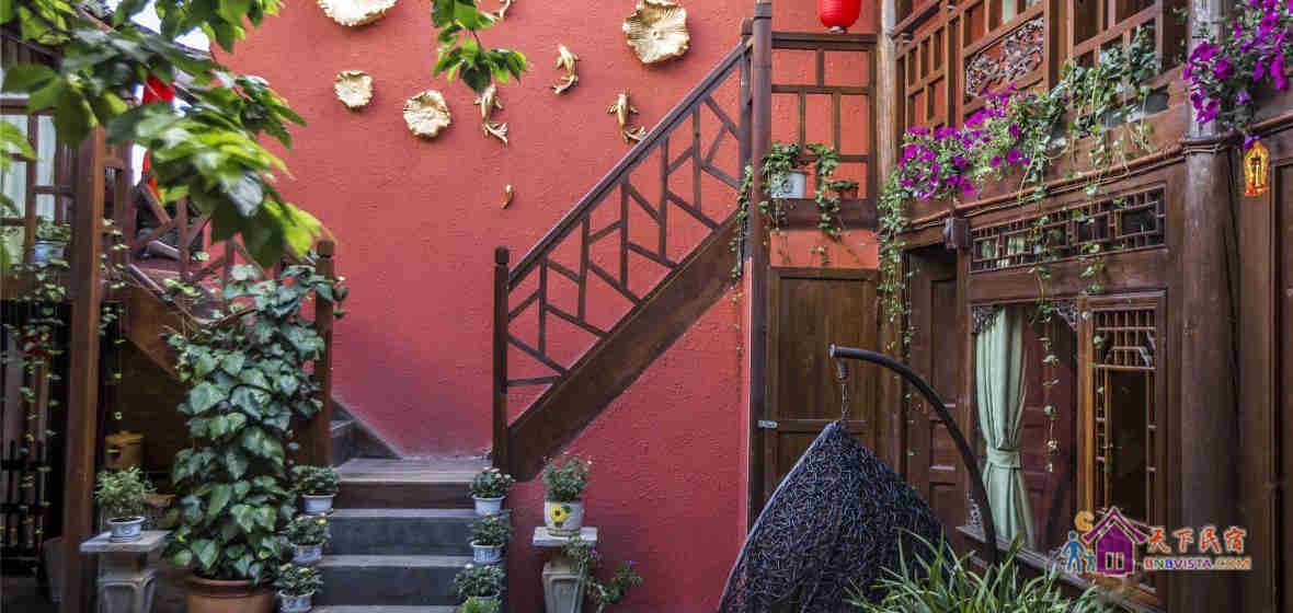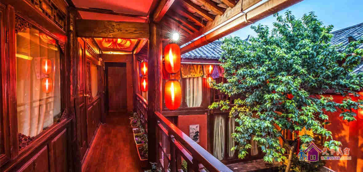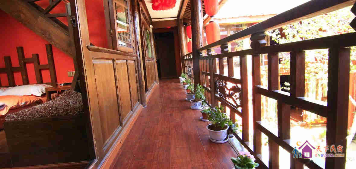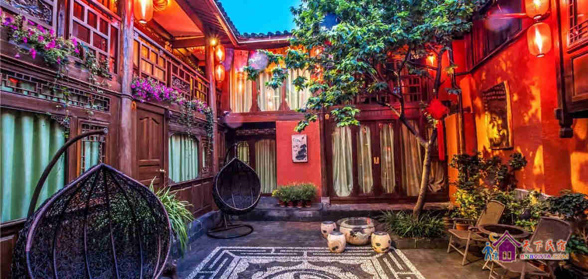 这是一个充满纳西风情的小院儿,有着高高的樱桃树。你可以在传统的二层木质结构纳西庭院内,感受碧空、艳阳。