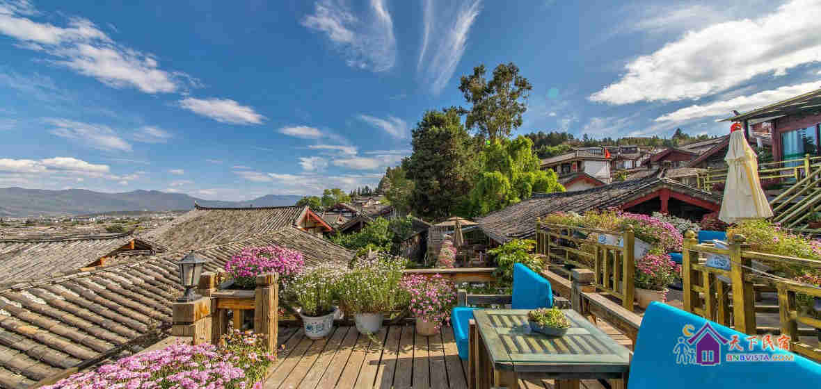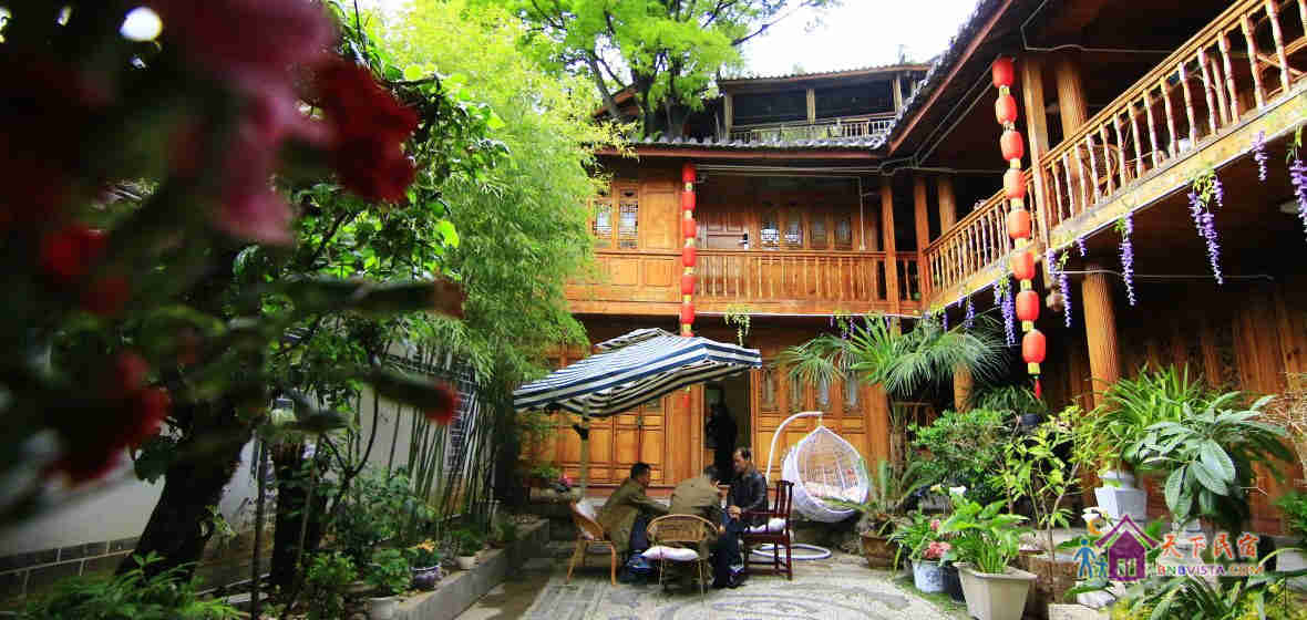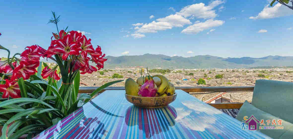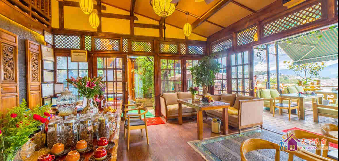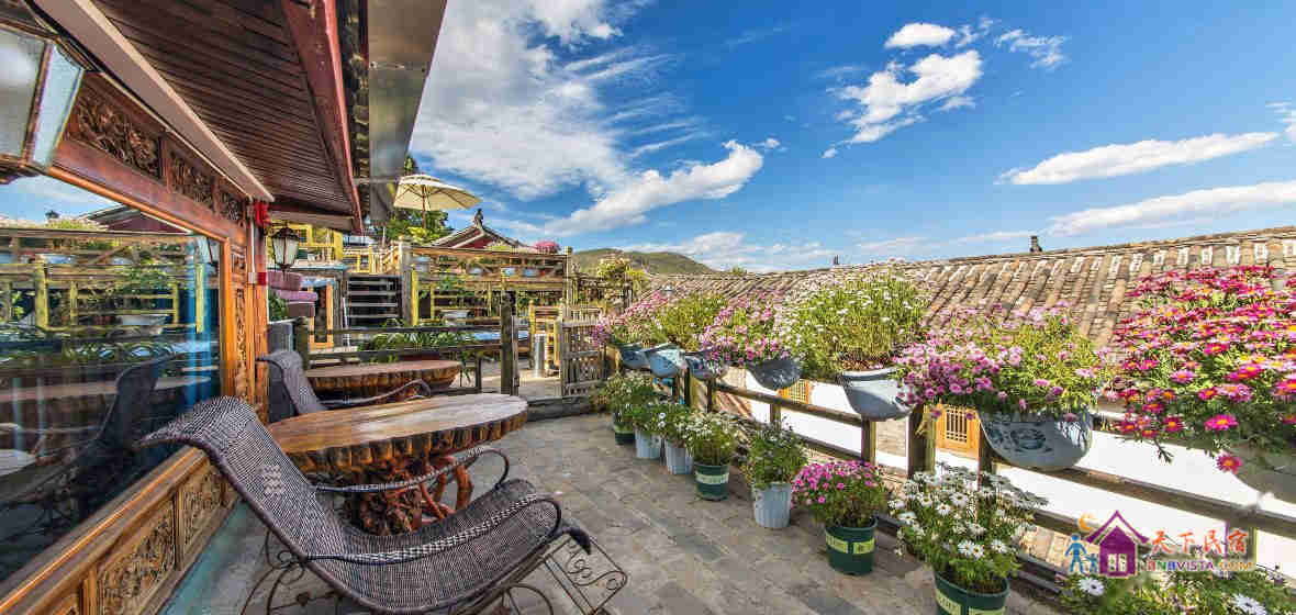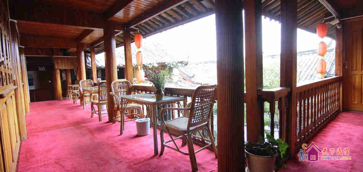 客栈是一坐以传统方式重建的纳西庭院式客栈,环境幽雅。坐在客栈的阳台上就能一览古城全景。宁静清晨的炊烟飘渺,血色黄昏的晚霞妖娆,留在这里的不仅仅是风景,还有家的感觉。