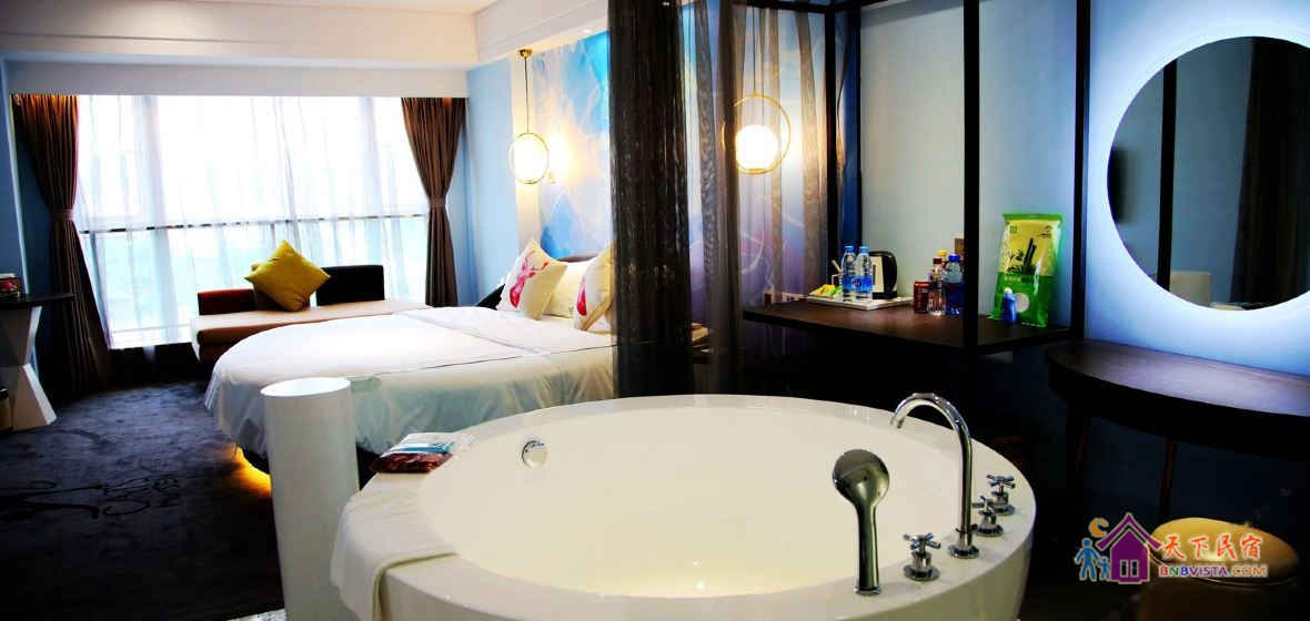 格调情趣类豪华主题房:超高清3D电影房,内有影院级媒体服务器,海量高清电影,4000流明1080P全高清3D投影仪,TrueHD数字5声道高保真环绕音效和主动式快门3D眼镜;音乐主题房,内有隐藏式专业立体声播放系统,高品质低损音乐,亦能蓝牙一键与您的手机相连;情侣主题房,是情侣谈情说爱,感情升华的理想驿站。