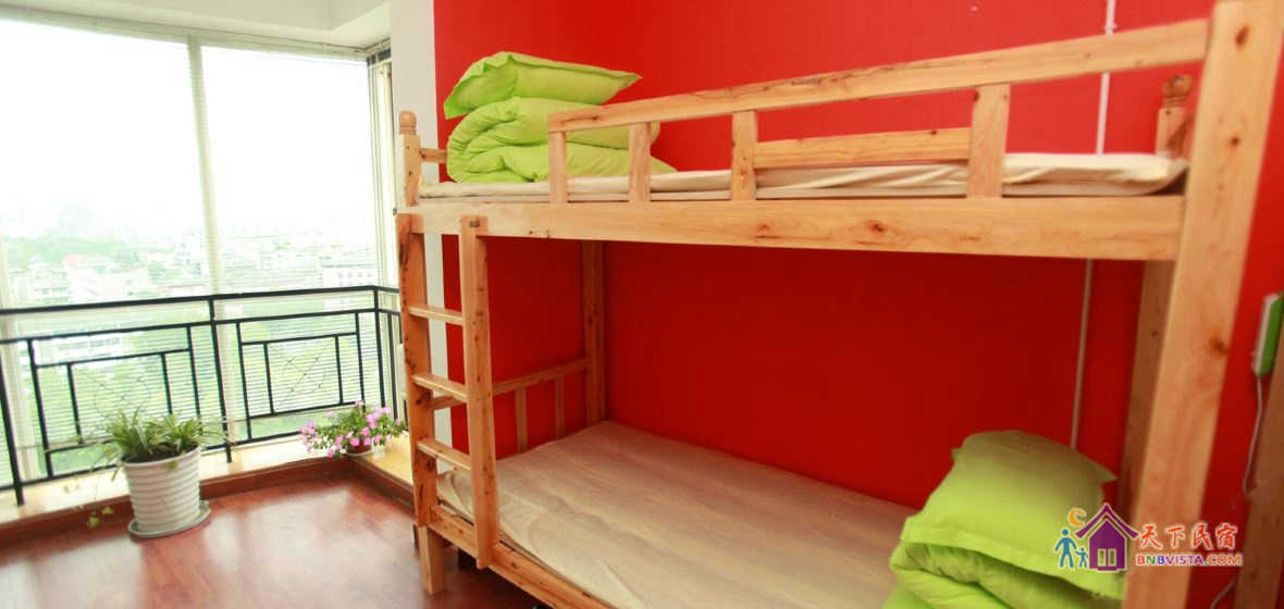 在【足迹】有实木高低床,有1.8米真正的大床房,就是为了住的舒适