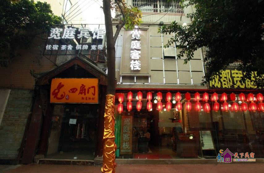 成都宽庭客栈是位于成都市市区内的一家中式庭院风格主题酒店。客栈位于蓉城成华区李家沱华油路203号,紧邻成都一环路。客栈房间装修均采用中国仿古式风格,硬件全部按照高级以上标准配置。客栈内的所有木制品均使用高档实木,客栈内有一个装修典雅,可容纳数十人聚会、会晤的花园茶坊;园内小桥流水,花木满园,风景怡人;是喧嚣的城市中一处不可多得的幽静之地。宽庭客栈是您到成都旅游、访友,休闲聚会的绝佳之处。