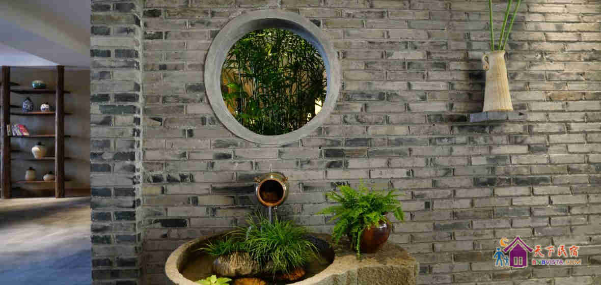 民宿分东村和西村两个村落,东村口牌坊上的楹联“梅松竹岁寒三友,书画诗翰苑一池,”这里有 以梅、松、竹为主题庭院,也有文人墨客品评书画的翰苑。