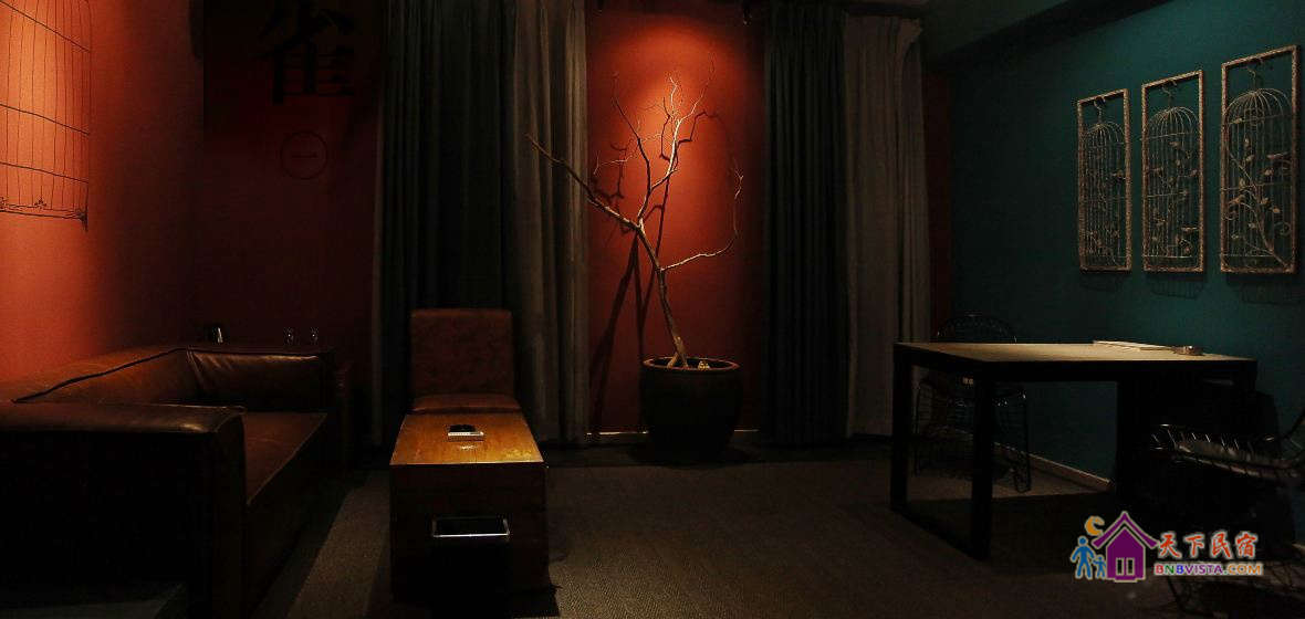 惠州停苑艺术客栈:为一处客栈撰一副对联,还是为一副对联开一处客栈,其实又有什么所谓!停苑驿馆有十间房,九间为客房,九种风情,分别取名“雀”、“花”、“逐”、“客”、“梦”、“墨”、“雪”、“映”、“禅”。连上最后一间作为布草客服房的“心”,刚好凑成一副对联“雀花逐客梦,墨雪映禅心。”九客房一如待字小姝,正青丝系,娥眉扫,绣香帕,染罗裙,如今红颜妆起,帘卷门开,笑待君来……