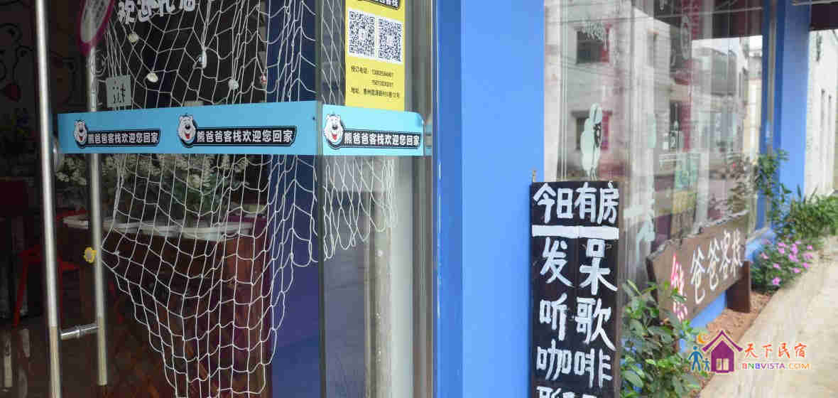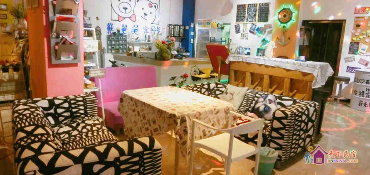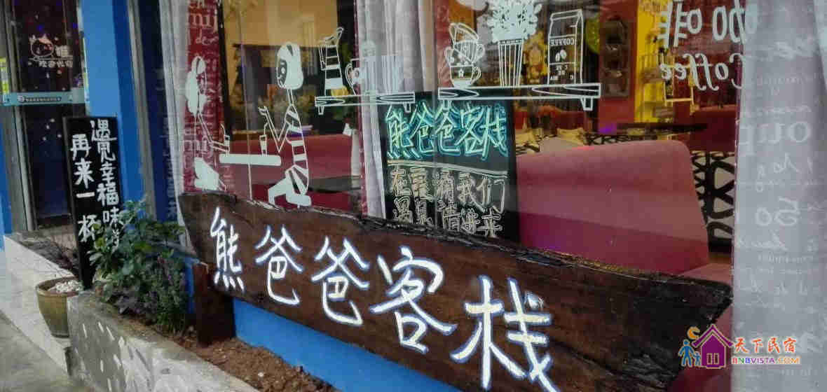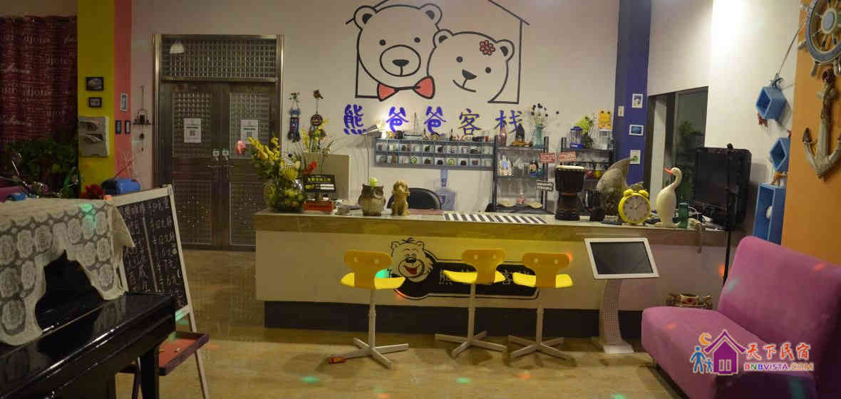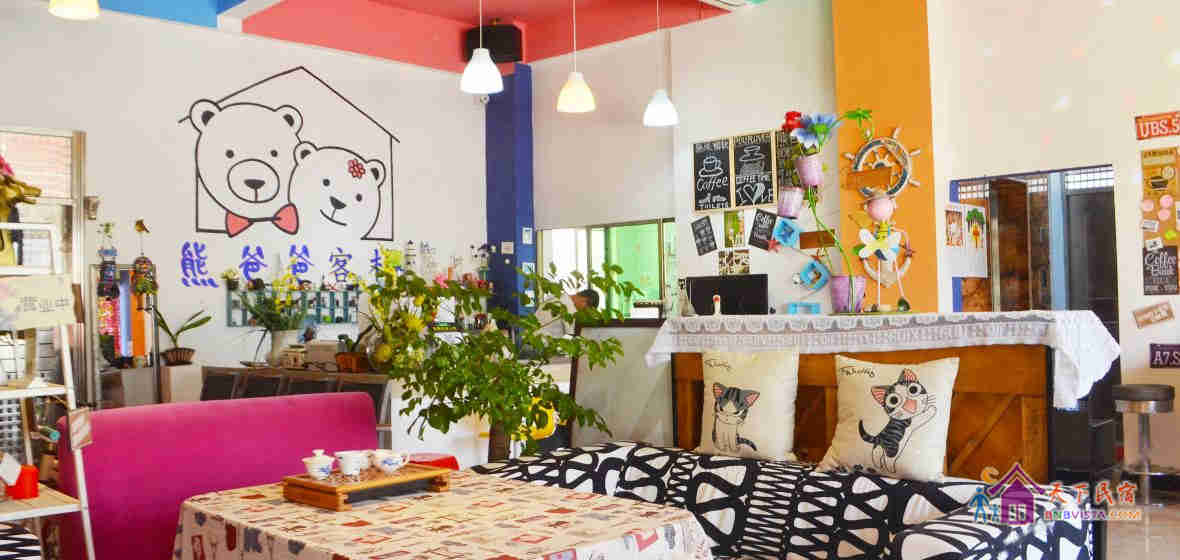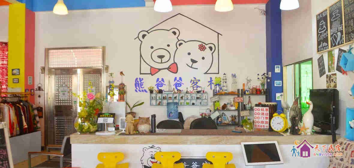 这里是一家休闲特色客栈,老板熊掌柜在深圳做旅游业18年,有很多的旅游爱好者自驾来到熊爸爸客栈。由于掌柜很少在海边,一直是熊掌柜的爸爸在客栈,时间久了,掌柜都叫游客找熊爸爸,后来掌柜直接给客栈名字叫“熊爸爸客栈”。