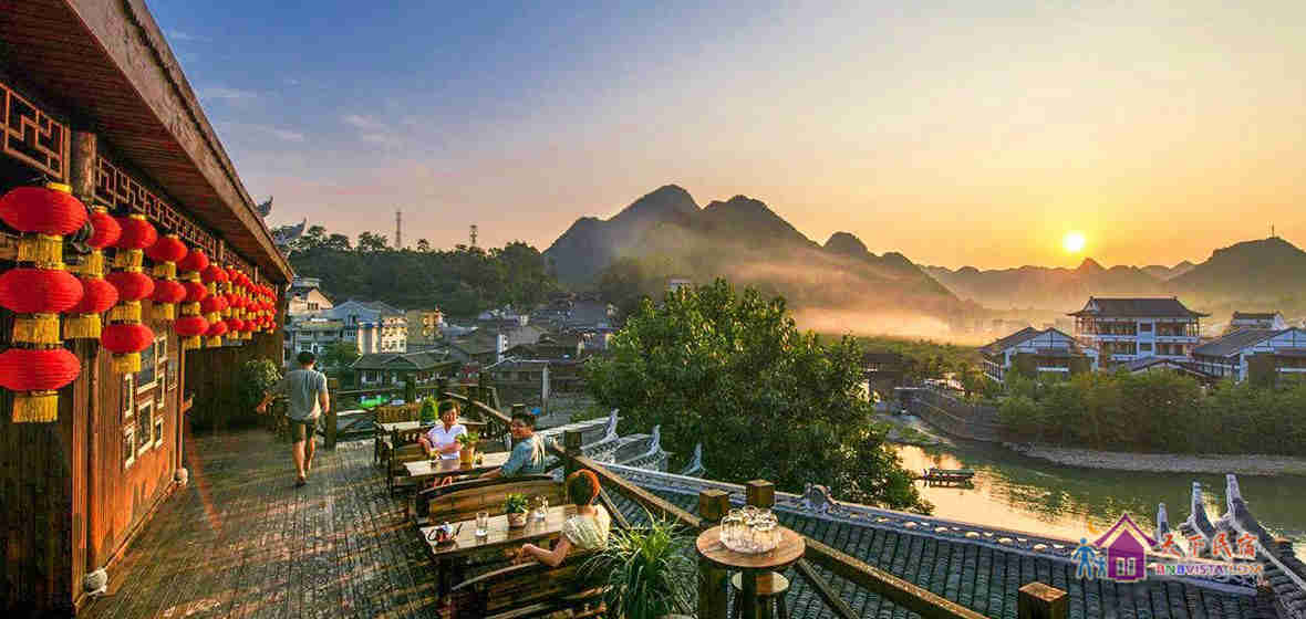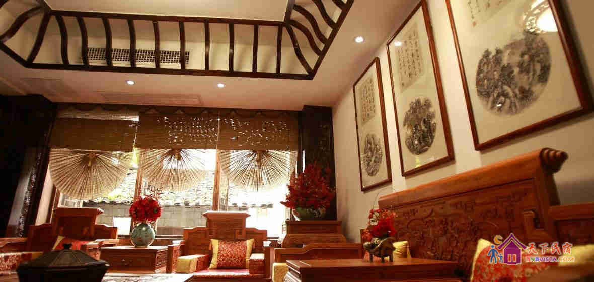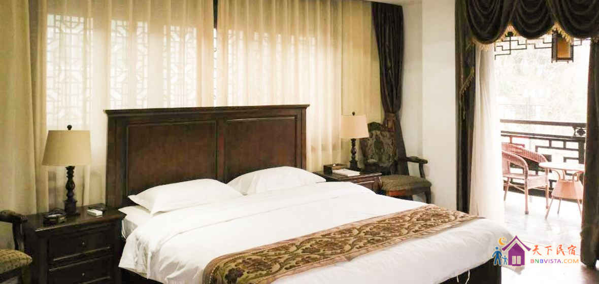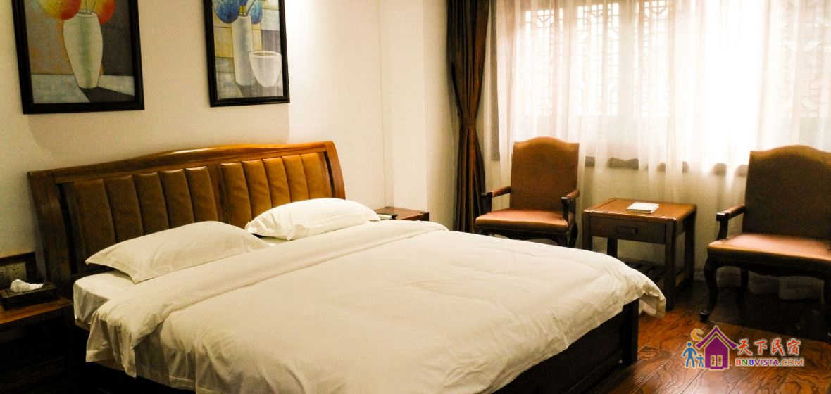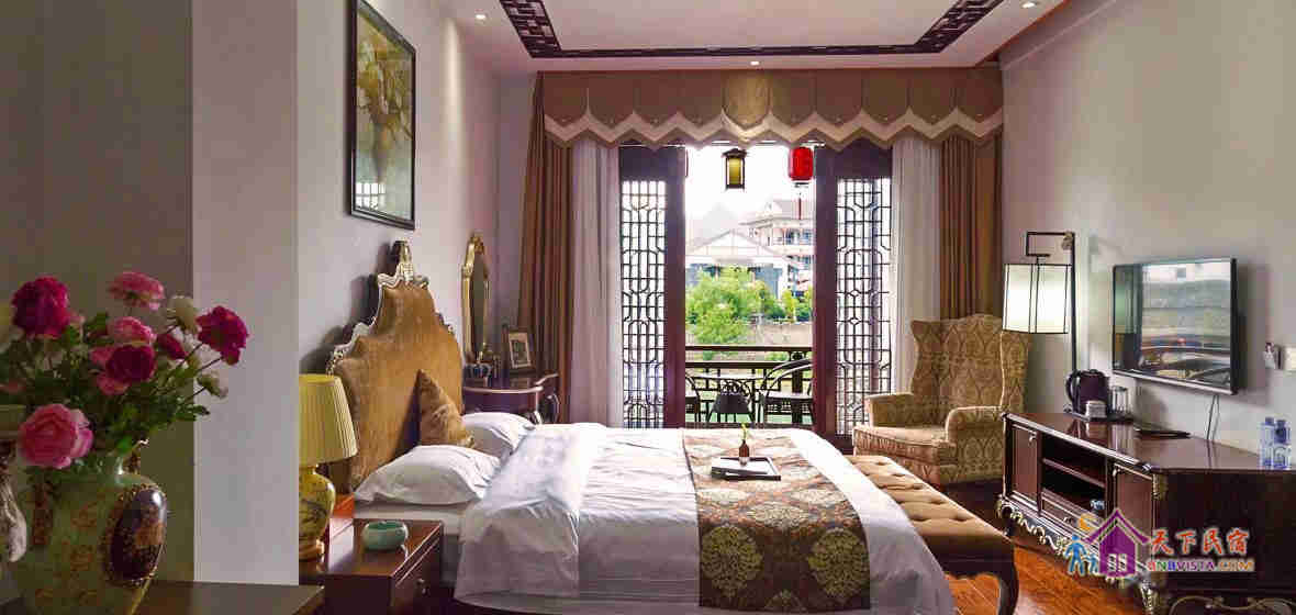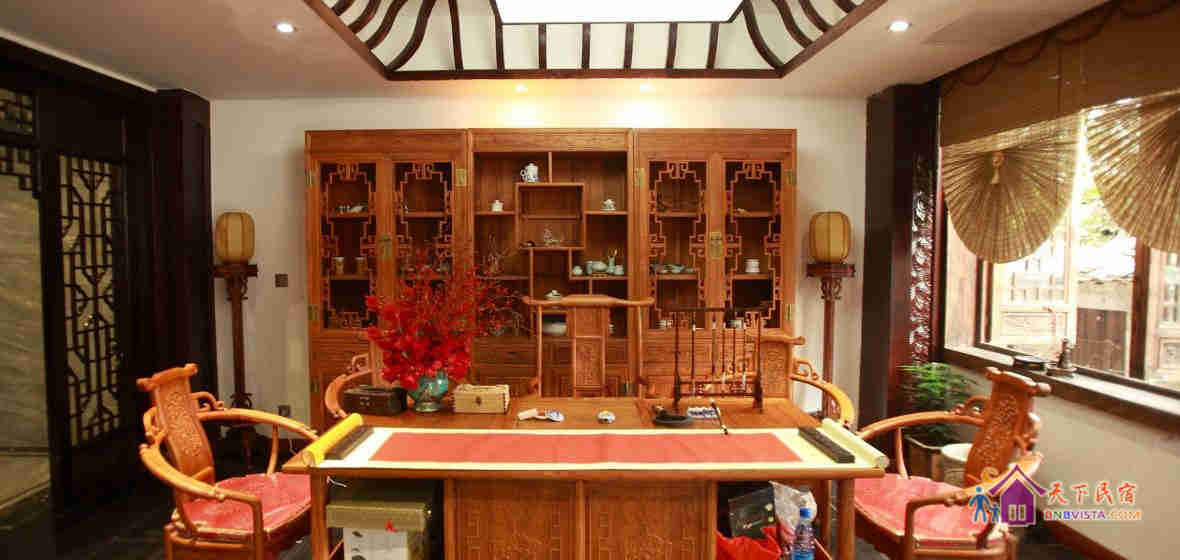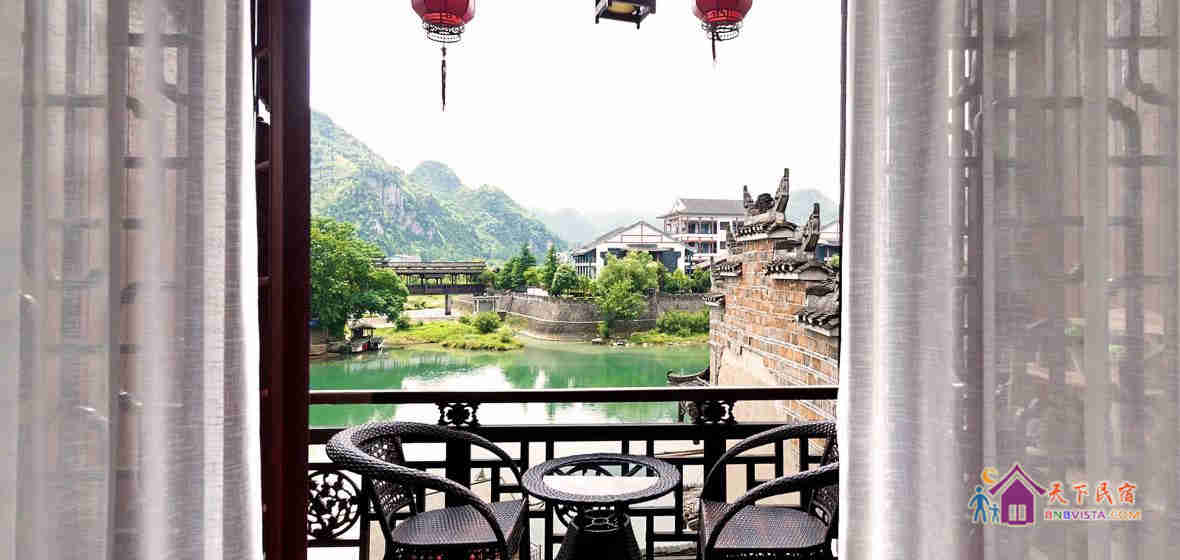 这是一个集住宿、餐饮、品茗、娱乐于一体的高端私人客栈,由两栋古朴建筑组成,一面环山、一面临水,视野开阔、环境优雅。