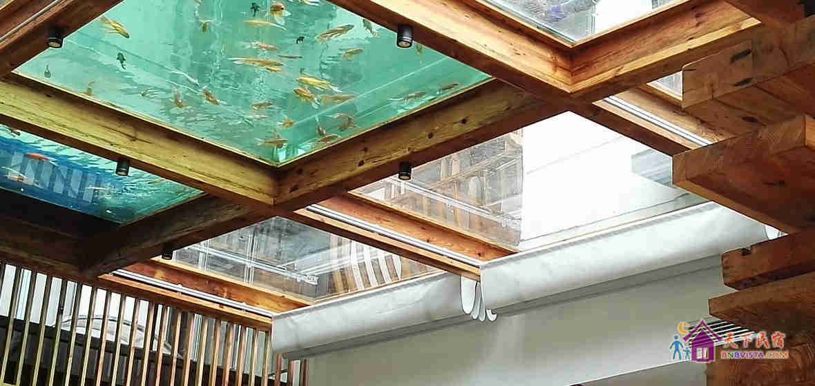 客栈以“清新风貌、粉墙瓦黛”为主题,将传统与现代元素相结合,勾画出历史与现代共存、人与自然共存的和谐美。简约的北欧风与徽州地方特色交相辉映,百年的老木头、老石板、没有修饰的水泥墙、空中鱼池、庭院、花园等,营造出诗意、忘我、安静、舒适的栖息空间。