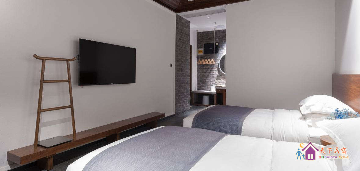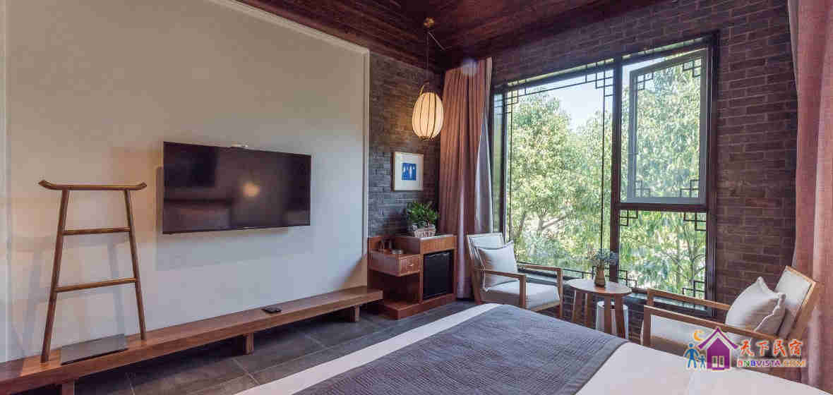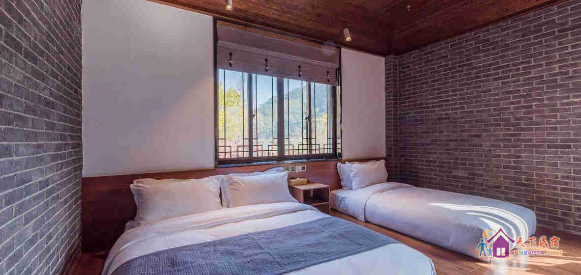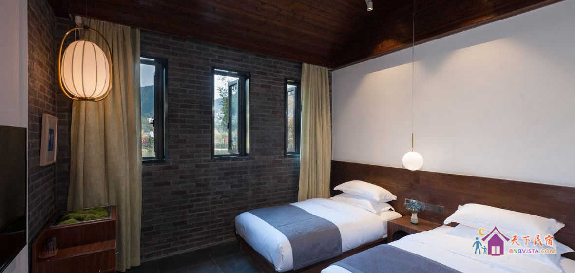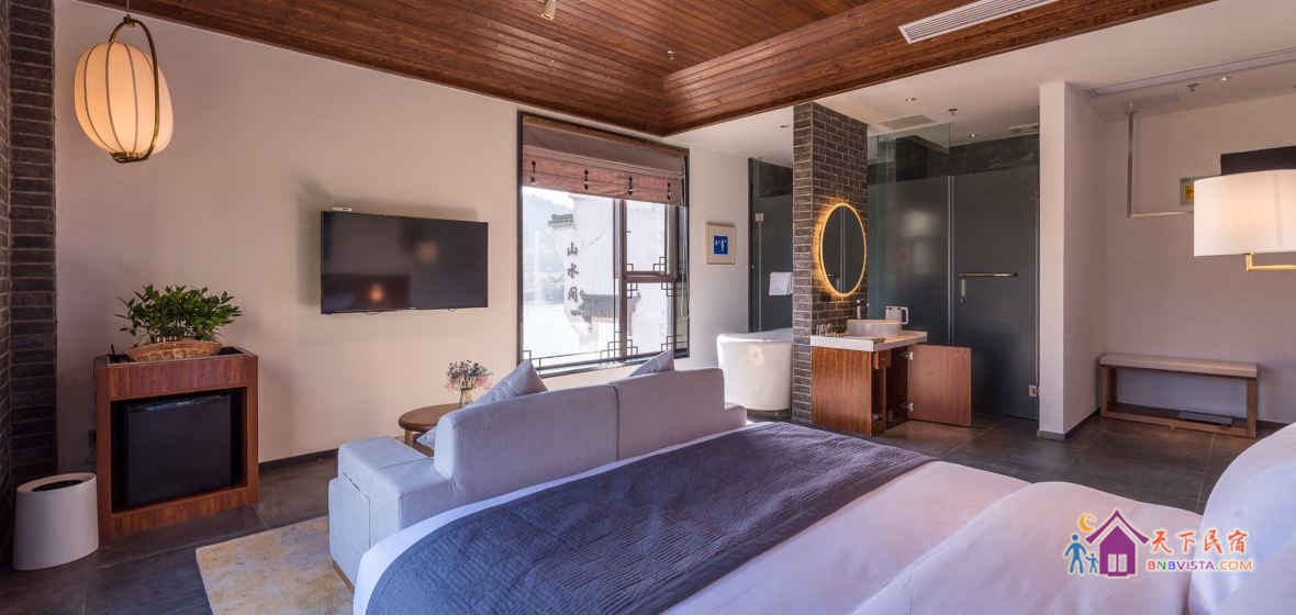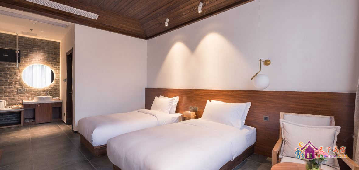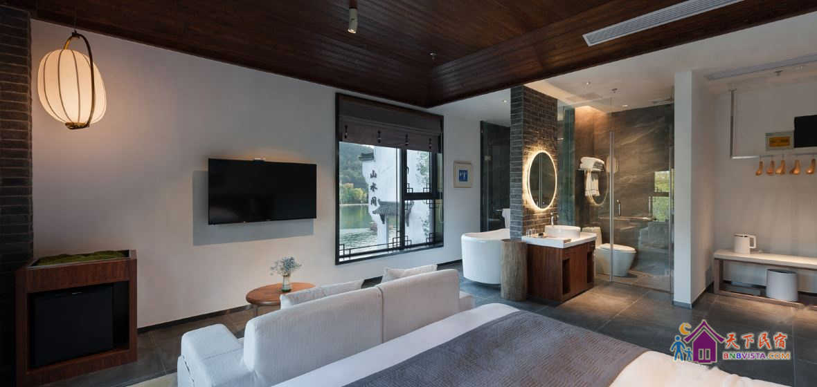 古朴俊雅的徽派建筑,跳出现代酒店的条条框框,创意性地将新安画派的名家水墨画廊与休闲欢愉的度假居室相结合。精巧的客栈内有着精致的十余间客房,融入了徽式建筑特色的现代化智能客房。客栈每个房间使用高星级的床上用品,舒适典雅的金可儿床垫,保证您的睡眠质量;源自英国的轻奢品牌Seven Plus茶语系列洗漱用品,为您洗去旅途的疲惫;设施齐全的家庭厨房,可助您一展厨艺。