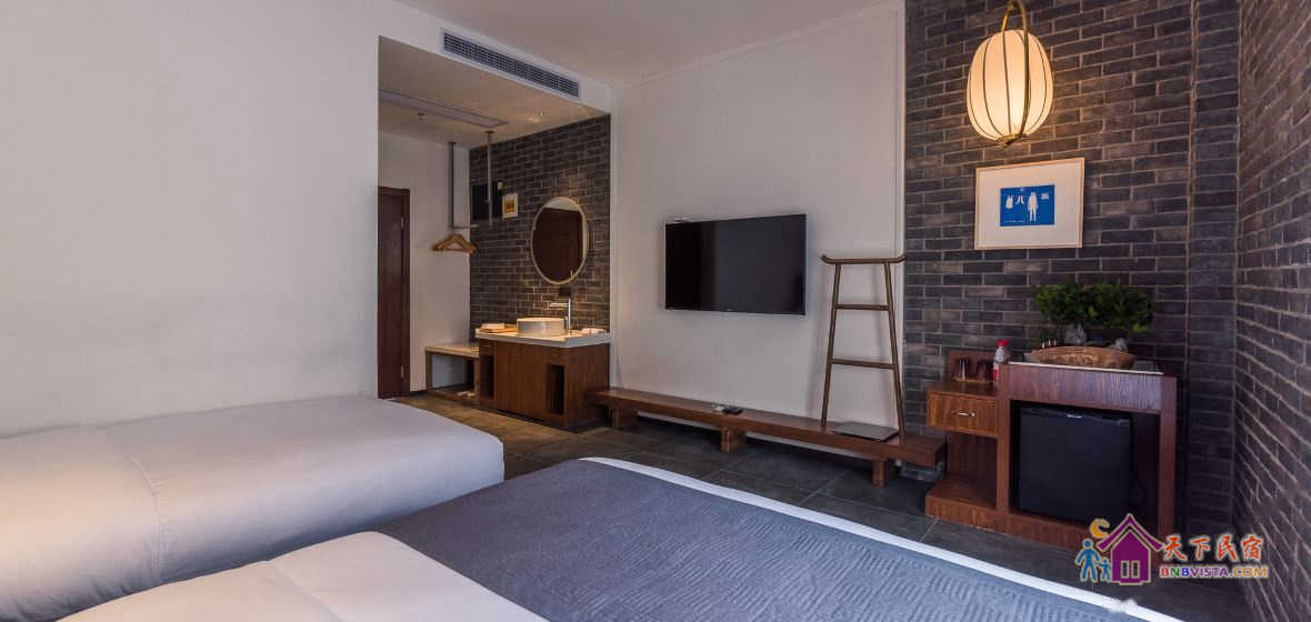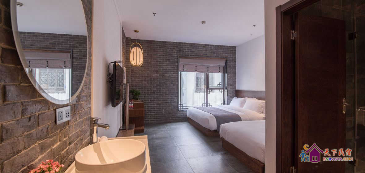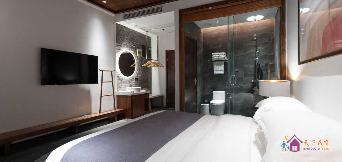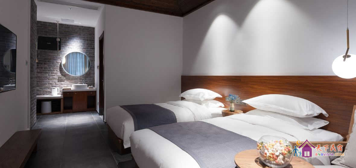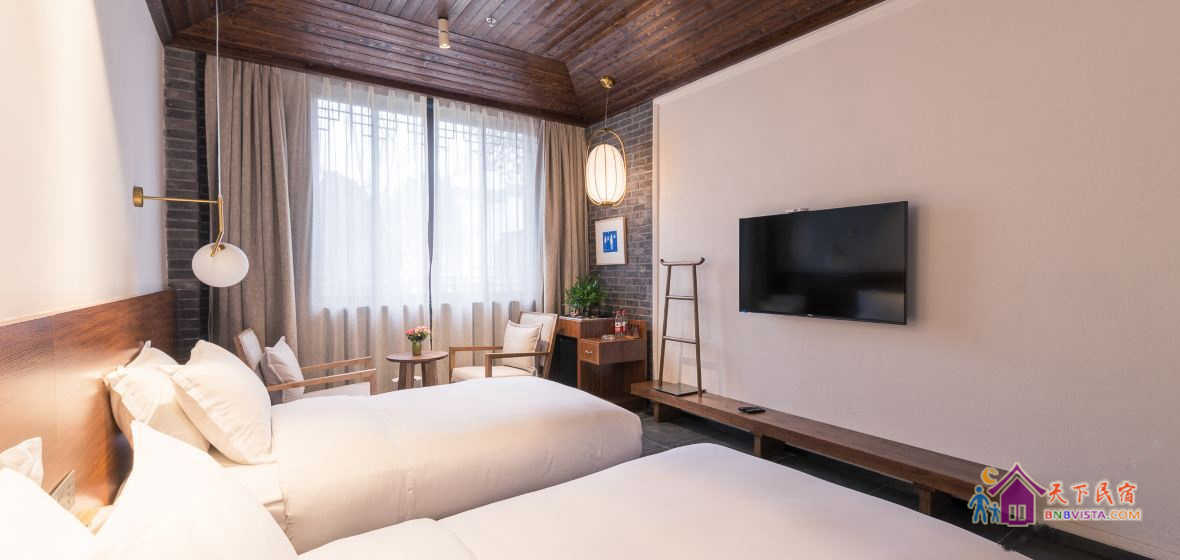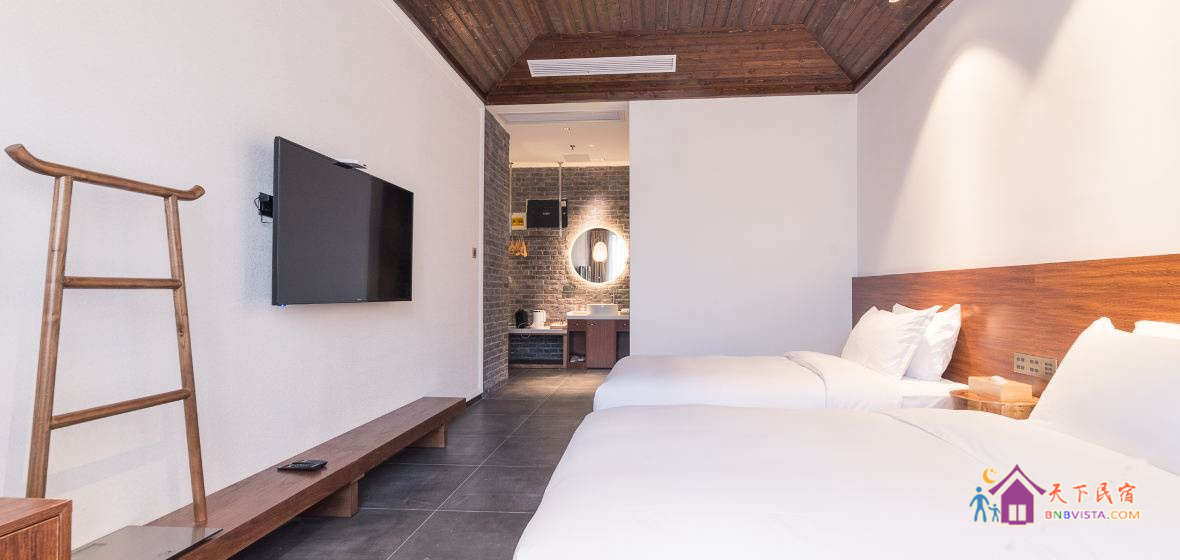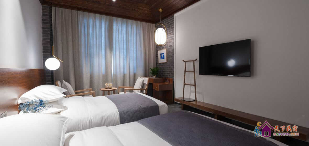 古朴俊雅的徽派建筑,跳出现代酒店的条条框框,创意性地将新安画派的名家水墨画廊与休闲欢愉的度假居室相结合。精巧的客栈内有着精致的十余间客房,融入了徽式建筑特色的现代化智能客房。客栈每个房间使用高星级的床上用品,舒适典雅的金可儿床垫,保证您的睡眠质量;源自英国的轻奢品牌Seven Plus茶语系列洗漱用品,为您洗去旅途的疲惫;设施齐全的家庭厨房,可助您一展厨艺。