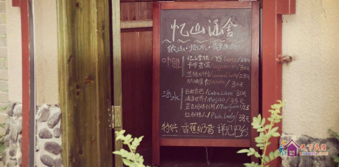 黄山忆山涵舍客栈位于逍遥水路,视野开阔,临溪平台即可远眺黄山主峰,环境清静幽雅,来自山上的甘泉汇成小溪,流经门前。客栈提供上好的现磨咖啡、黄山绿茶、红茶、菊花茶、鲜榨果汁以及多种口味的葡萄酒、威士忌酒和甜酒。