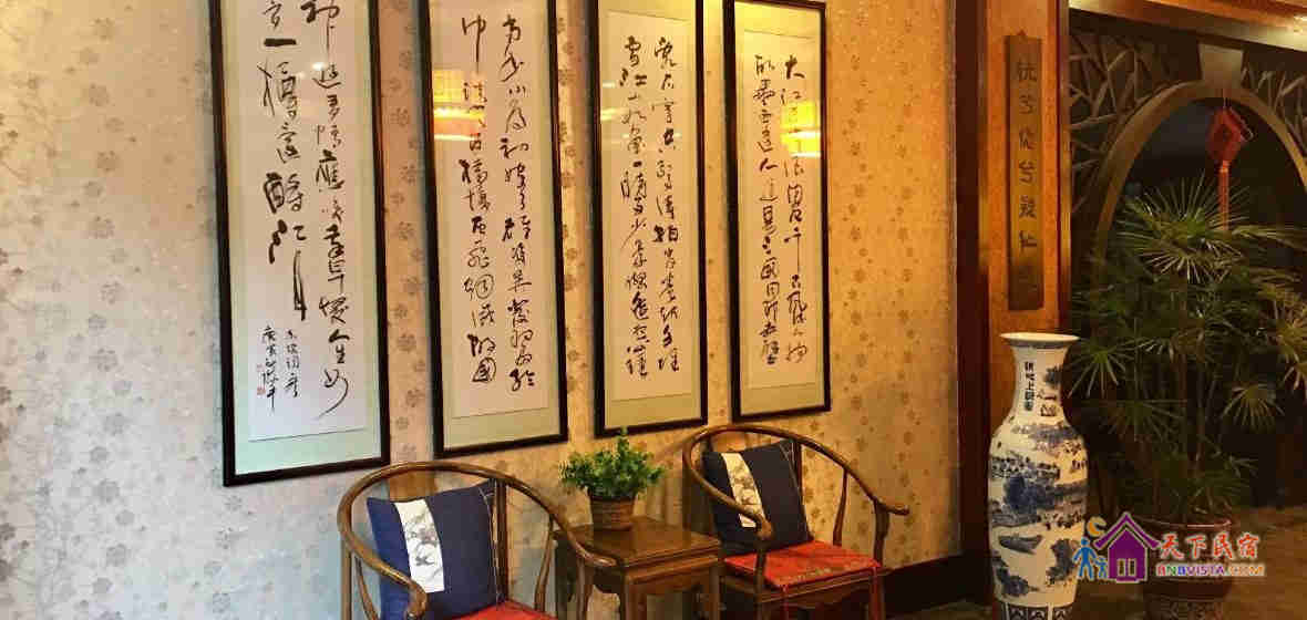 尹老先生,这位柳江古镇倍受尊重的艺术家,擅长于书法绘画,正是基于他对中国文化的热爱和深刻理解,以及在笔墨中练就的深厚功底,使这座酒店在具备完备入住功能的同时,为游客、书画爱好者提供了共同分享柳江山水之美和文化交流之所。