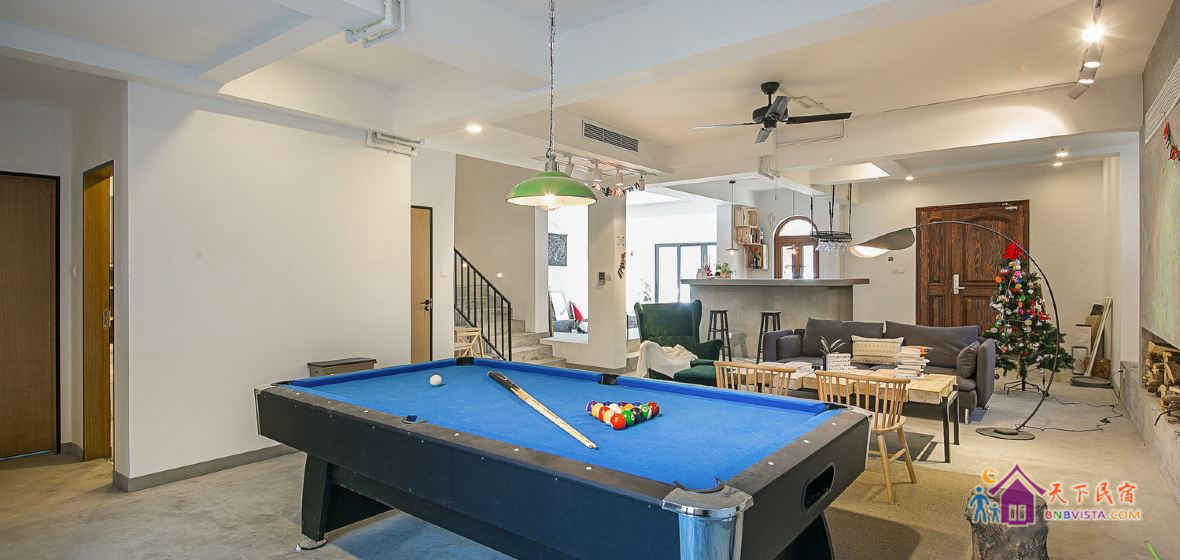 房屋空间宽敞,无论是三五好友还是一家老小,都能安心入住。居室环境干净整洁,内部精心布置了家具电器、娱乐设施,是好友小聚、周末放松、家庭派对、公司团建的理想之所。房间里除了配有齐备的家具家电,休闲娱乐设施也是种类繁多,ktv台球桌等应有尽有,宅在家也能尽情嗨翻天。厨房里准备了简单厨具,可供您下厨烹饪家常美味,房东还提供烧烤设备,随时都能来场自助BBQ。民宿周边环境十分优美,让您住得安心