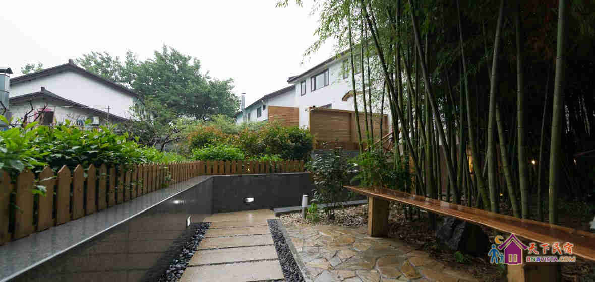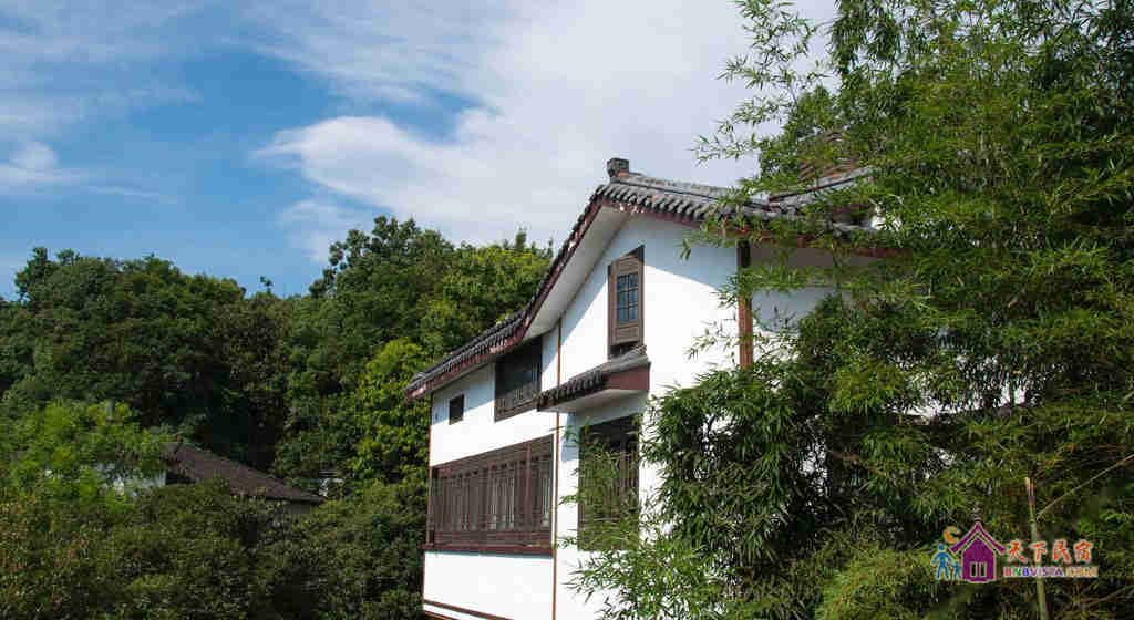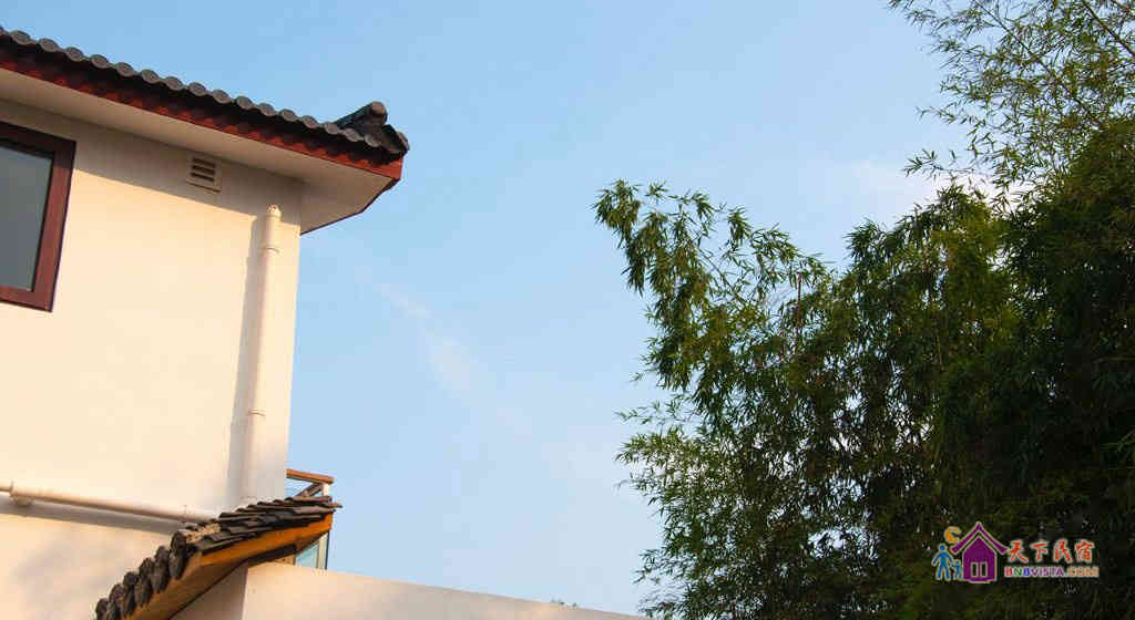酒店座落于一片江南原生态村落中,乌瓦白墙,飞檐仿古的建筑掩映在一片茂林修竹中,亭阁宛然,花木葱茏。