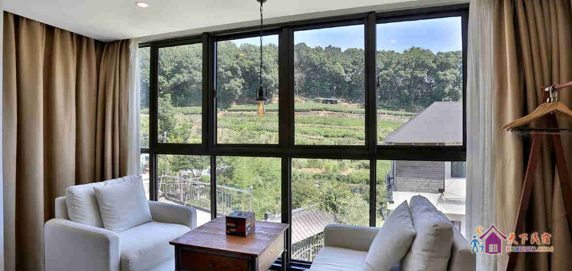 置身民宿,有一种私家花园的感觉。准备好电热水壶和瓶装水,以满足您的喝茶的需求。如还不够,还有店内人员去从虎跑泉取回的水,煮沸、泡茶,观茶山,品香茗。